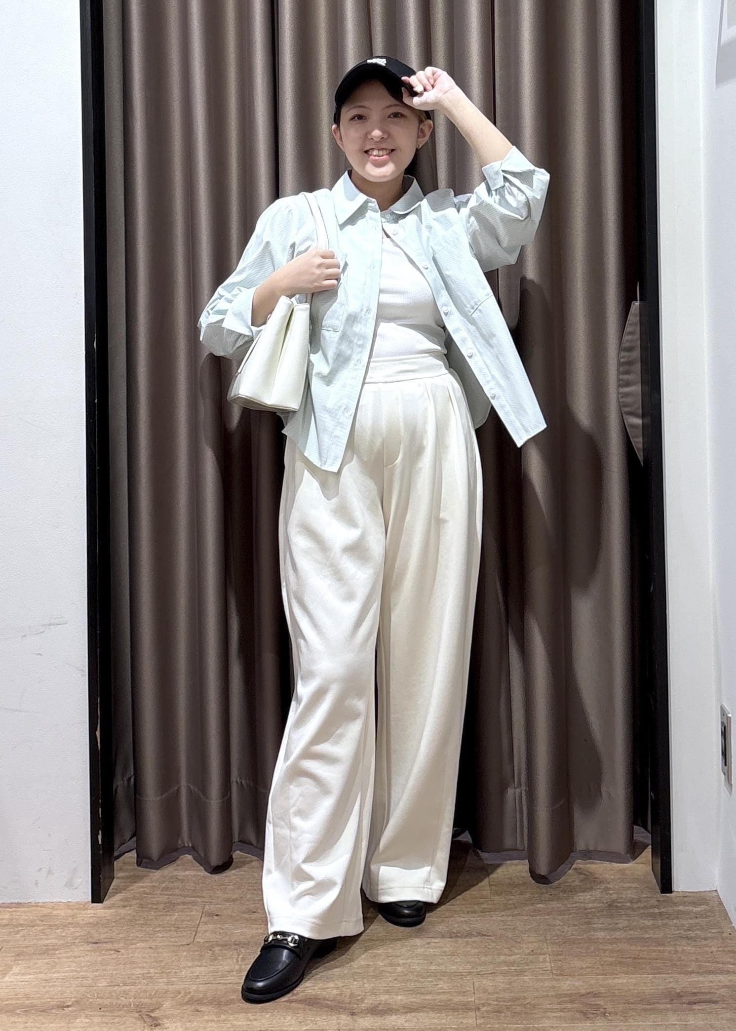 ストレートワイドパンツですとんと落ちてくれるので綺麗に見えます!