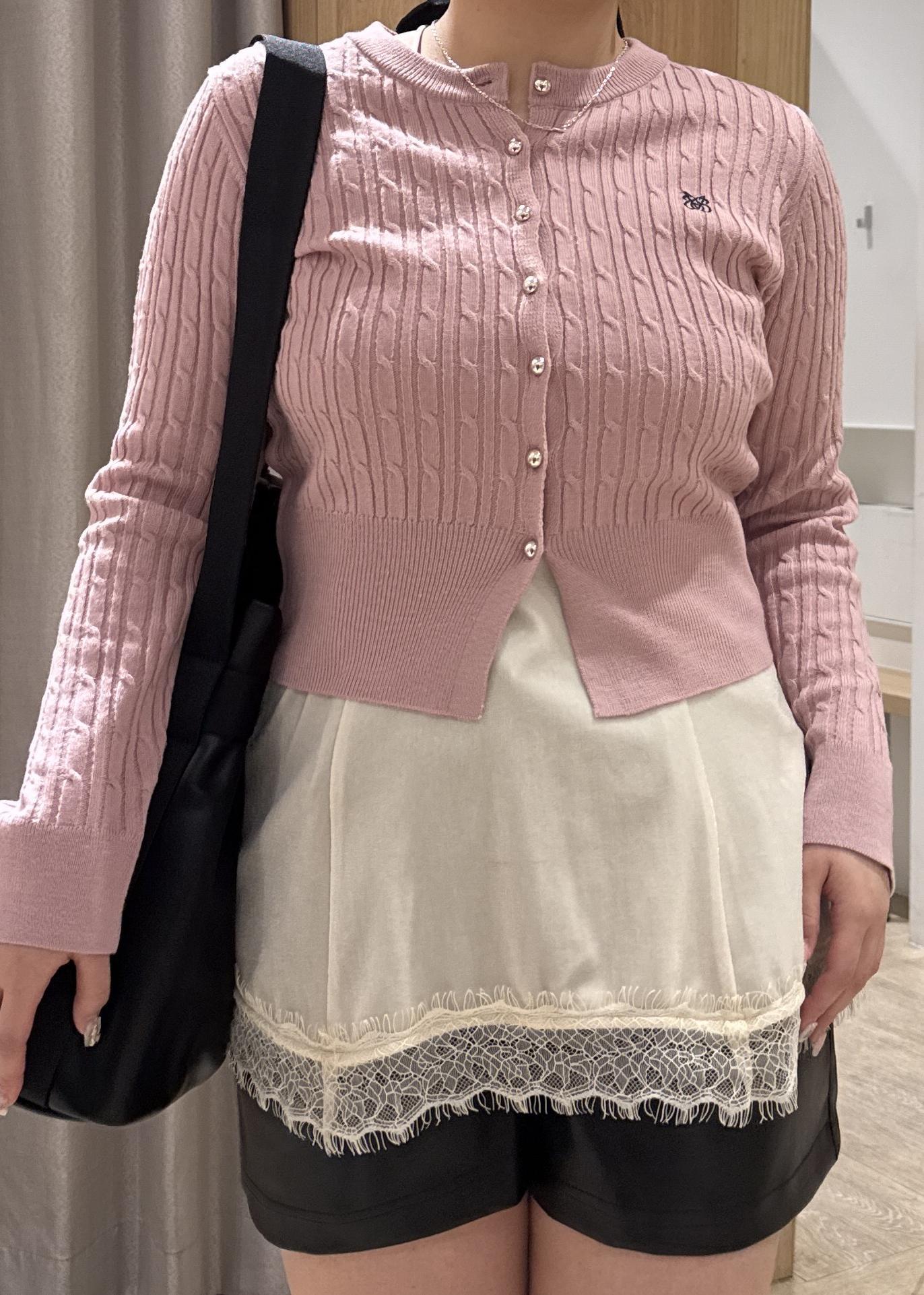 VISケーブルコンパクトカーディガンピンク / F¥3,842レビュー153cmの私ですが、腰位置の丈感でした。