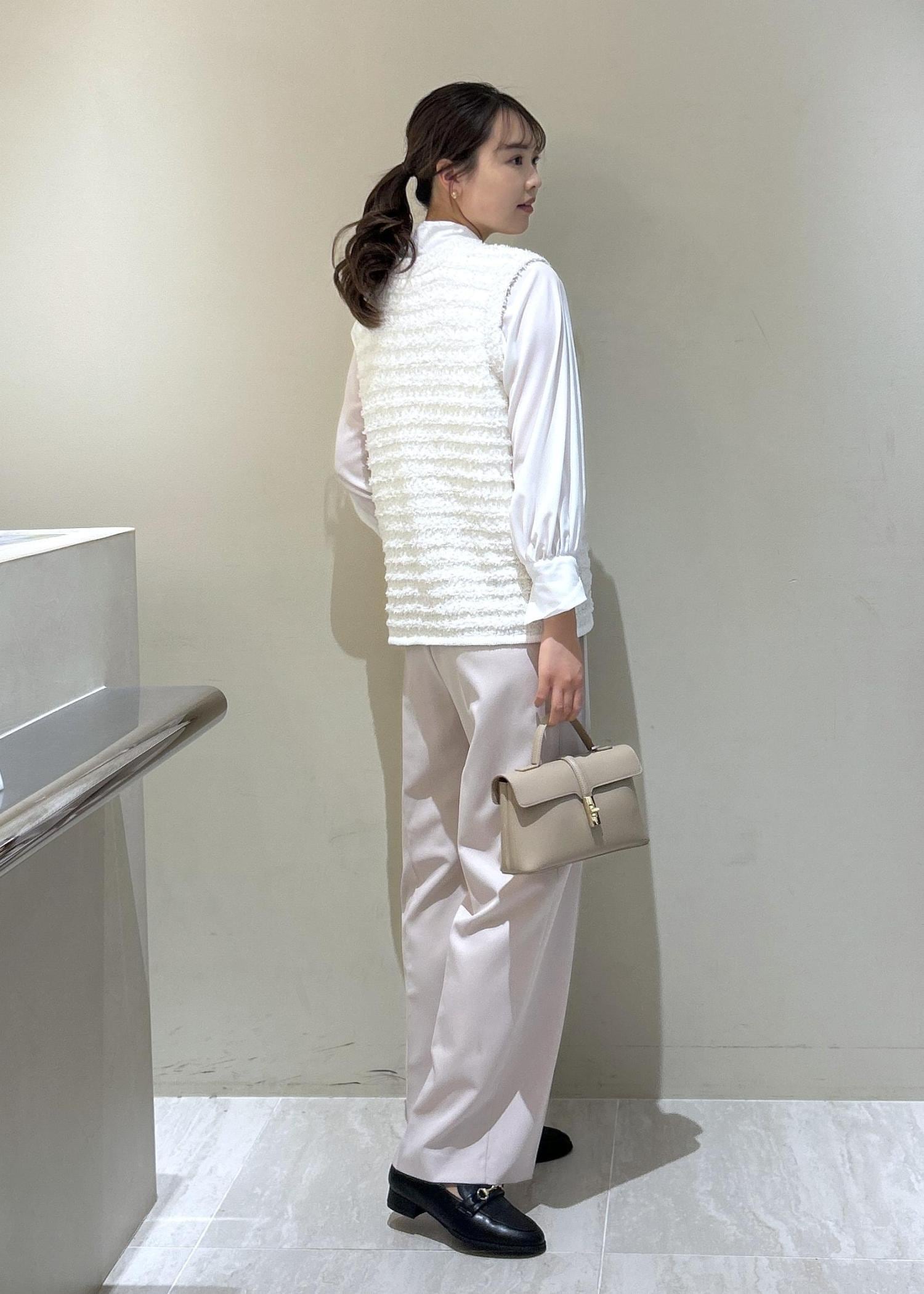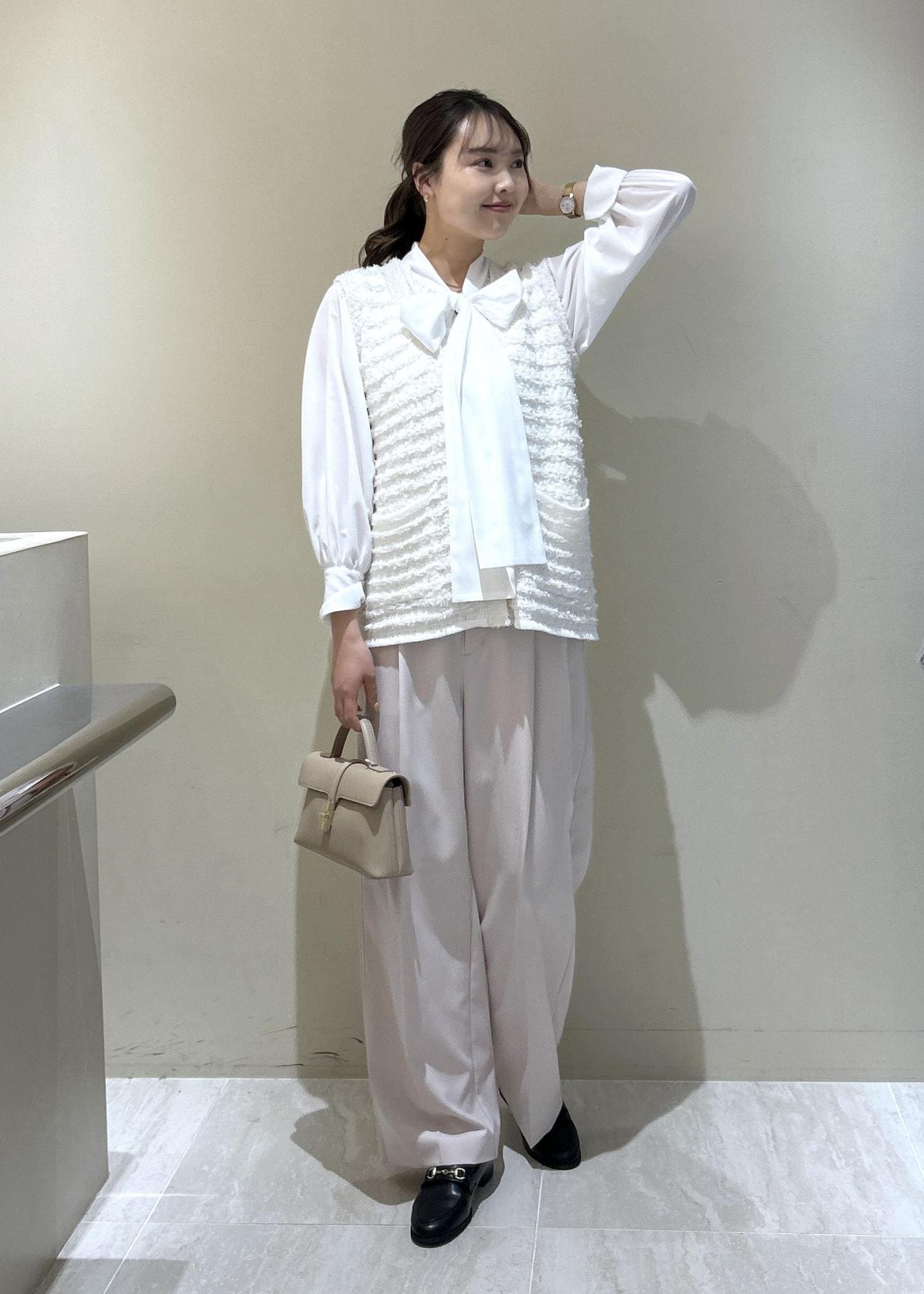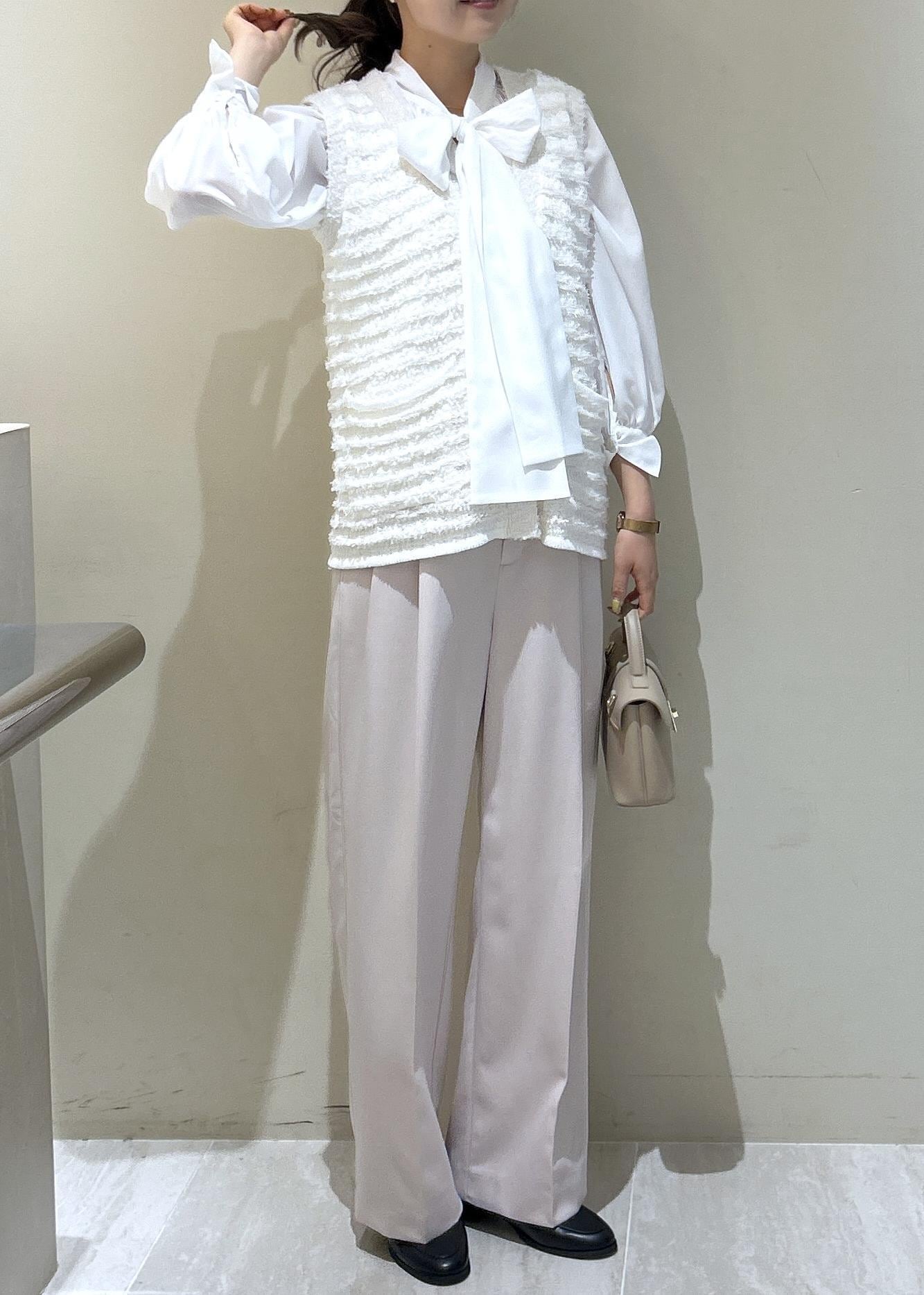 華やかなシーンでは中のブラウスをボウタイリボンにして