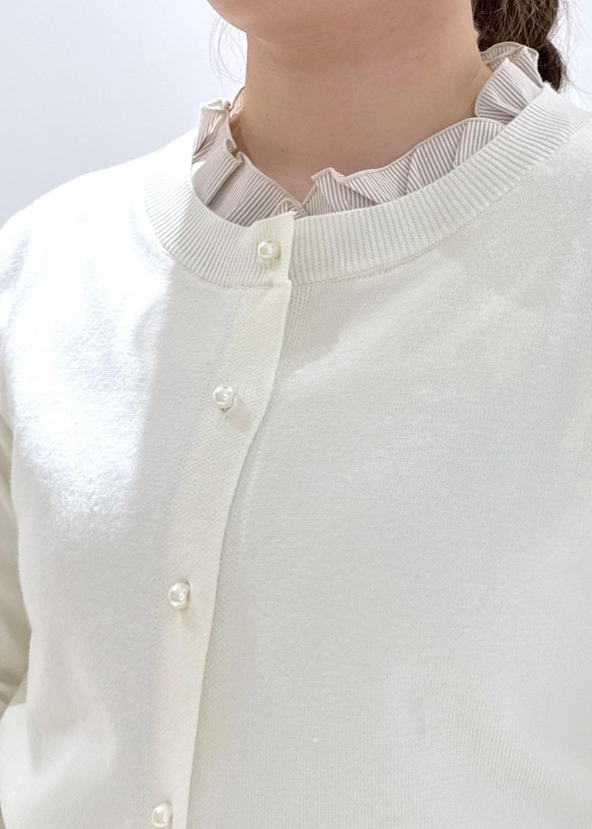 VIS【美得】フリル襟ドッキングニットカーディガントップスオフホワイト / F¥5,929レビューニットとフリルシャツのレイヤードデザイン⭐︎