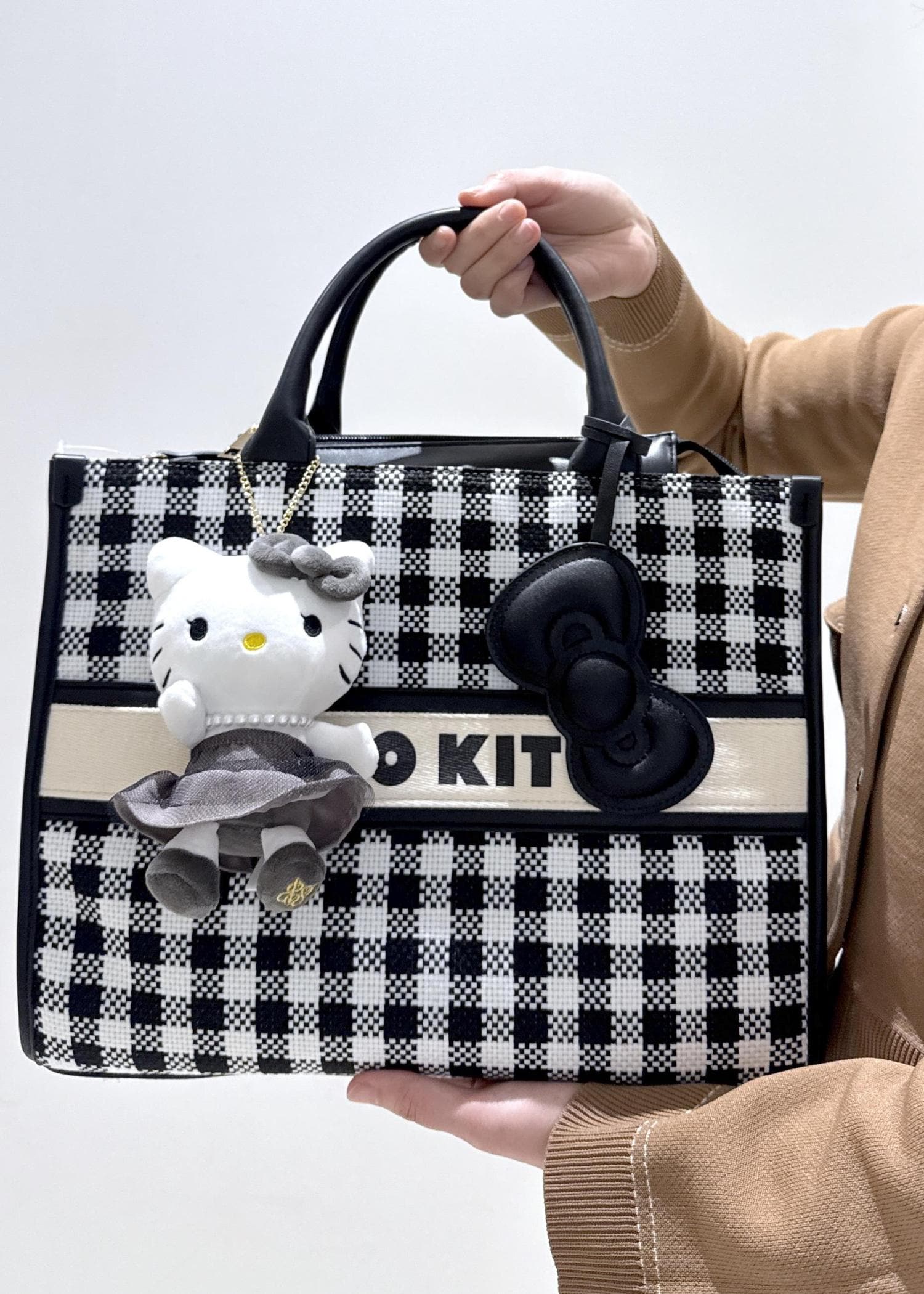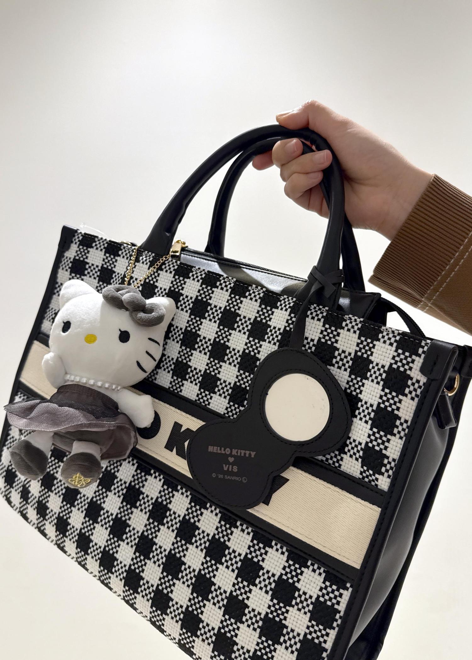VIS【HELLO KITTY×VIS】リボンチャームトートバッグブラック系 / F¥7,909レビューVIS×HELLO KITTYとのコラボアイテム♪意外と大きめなサイズ感に、ノートパソコンや飲み物、お弁当などが入るので旅行用としてだけでなくお仕事用にも使えそうです!ワンハンドルでもショルダーバッグで2wayで使用可能◎リボンの部分がらコンパクトミラーになっているのも嬉しいポイント⭐︎