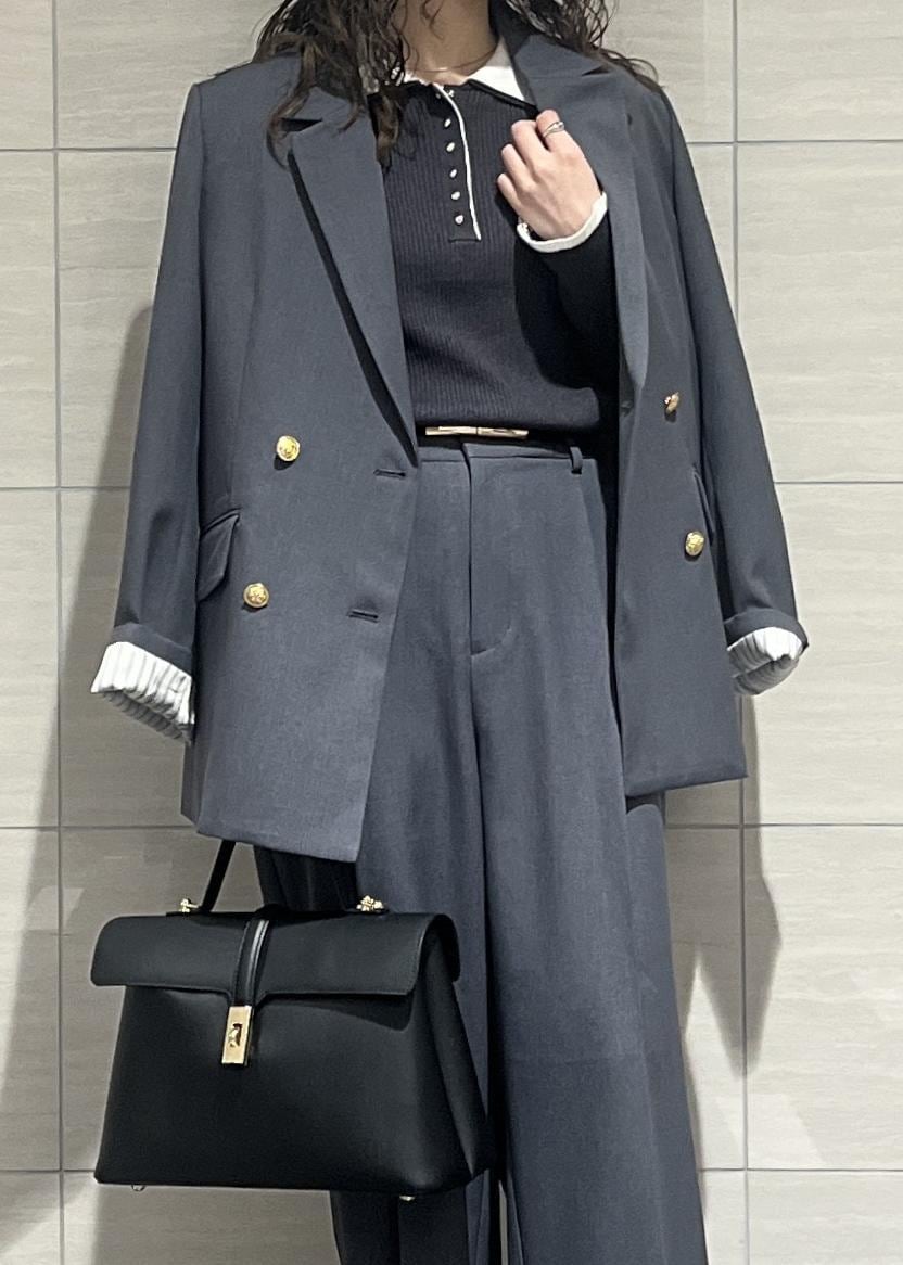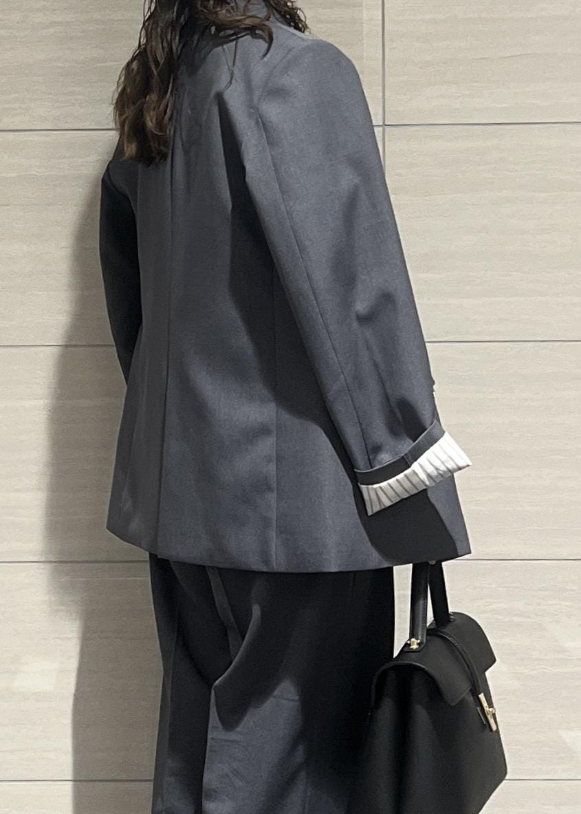 VIS【美easy】コンフォート金ボタンジャケット/イージーケア・UVケア・セットアップ対応グレー / S¥8,899レビュー152cmでSサイズ着用。お尻周りが隠れる着丈です。袖は長めですが、ロールアップする事で抜け感ができお仕事でも普段着でも着用できます。