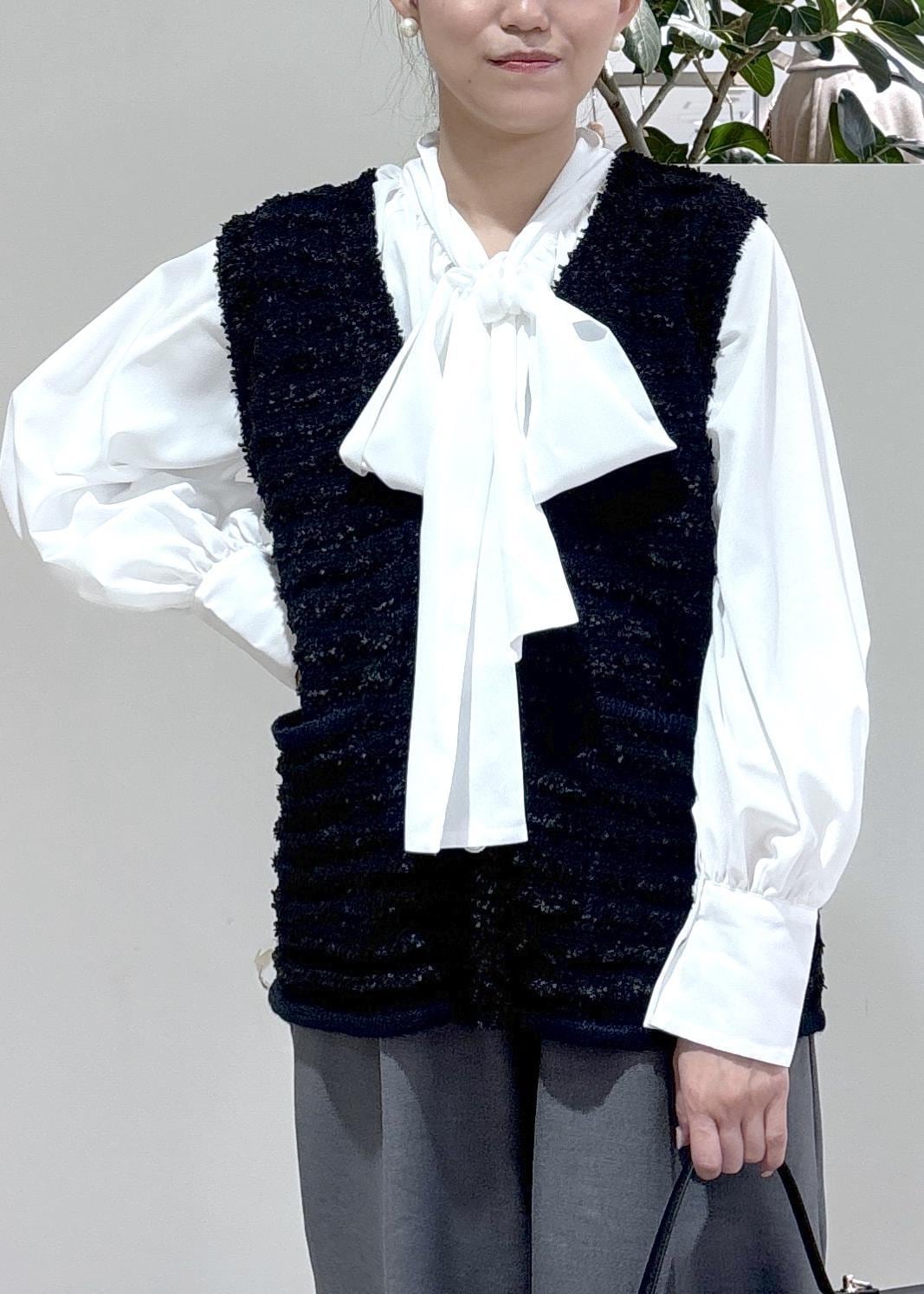 VIS前後2WAYボリュームボウタイブラウス/イージーケアオフホワイト / F¥5,929レビューふわっとした袖の形や長めのカフスが手首を綺麗に見せてくれるブラウス。