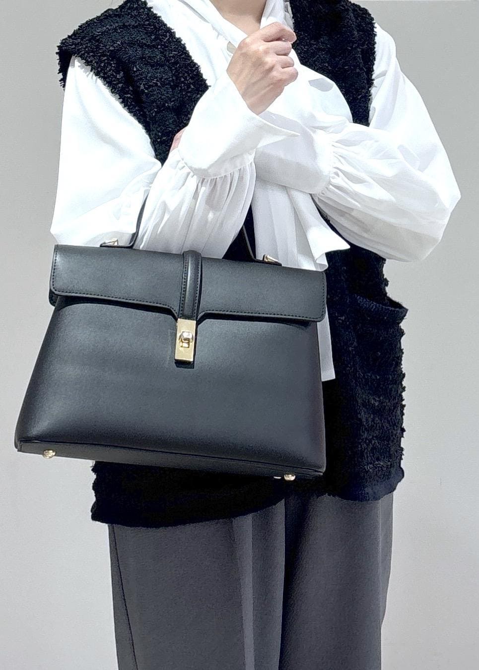 ショルダーも付いているので、その日のコーディネートに合わせて使えます。