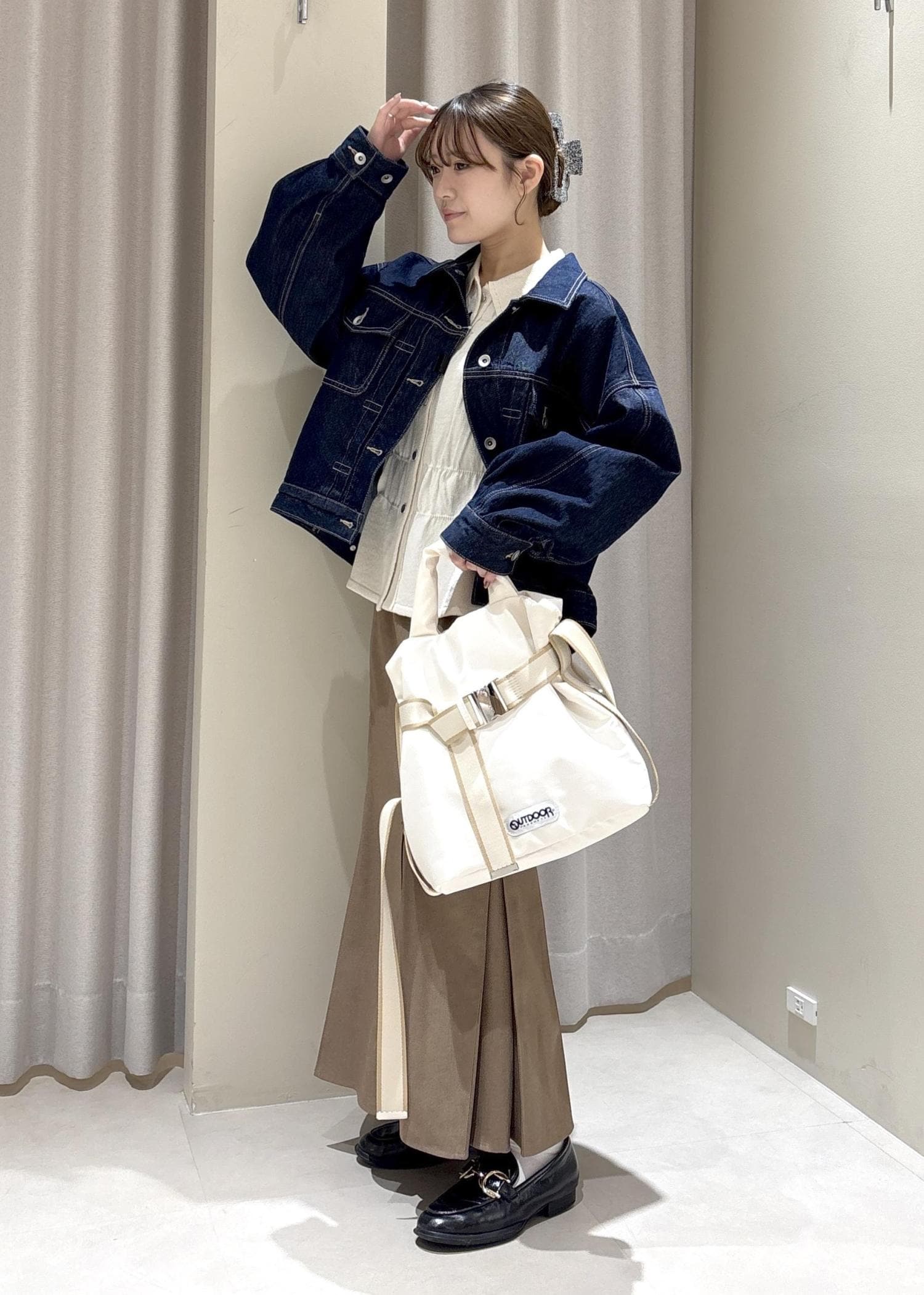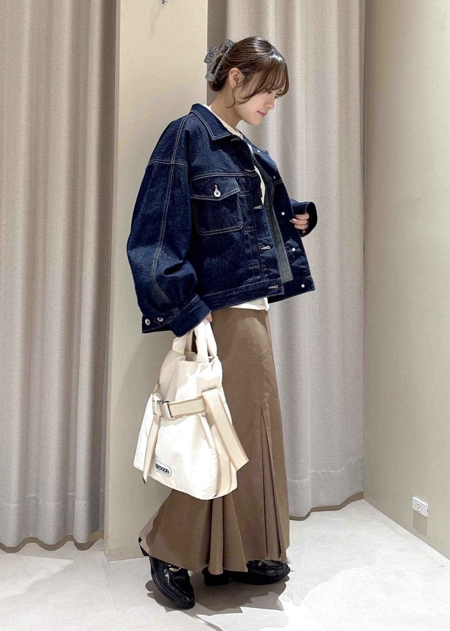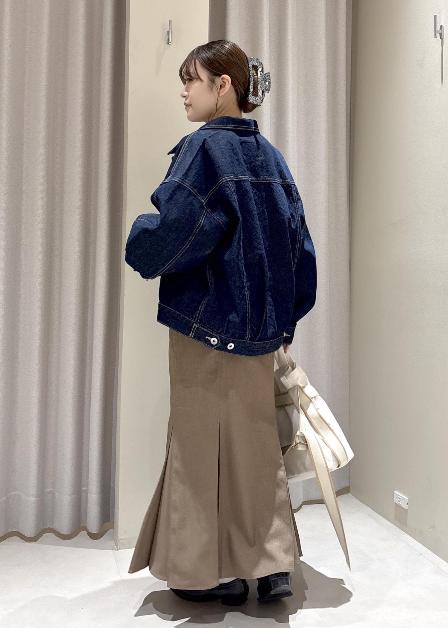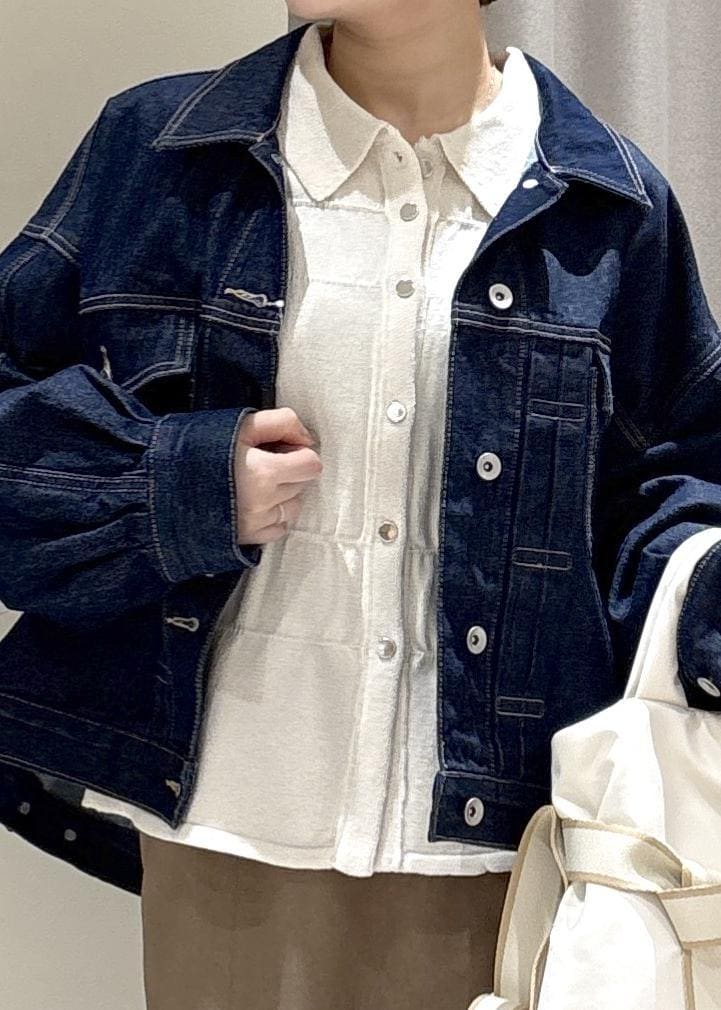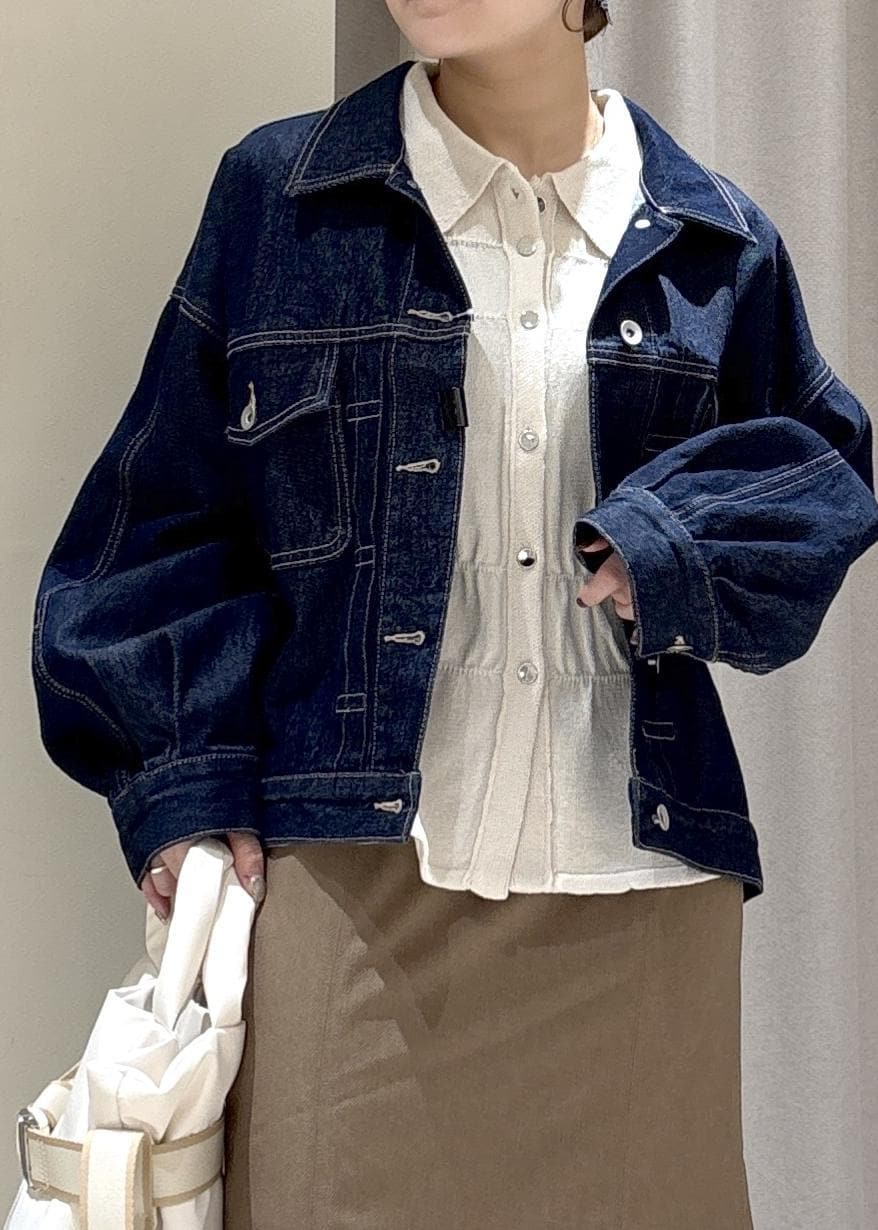 VISボリュームスリーブデニムジャケットネイビー / F¥9,999レビュー形が綺麗で、カジュアルでデザインも可愛いので、いろんなお洋服に合わせやすいです。