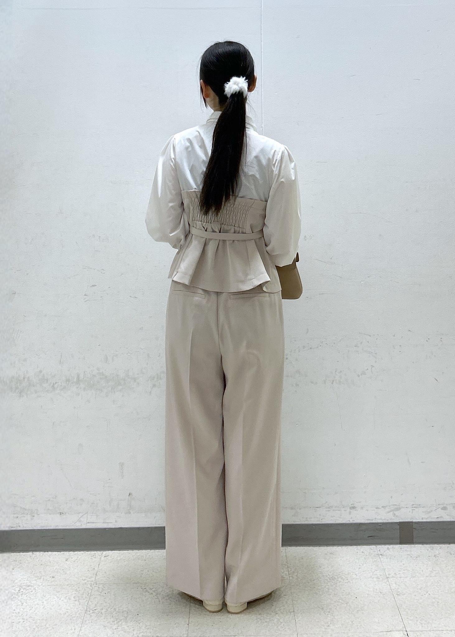 シワになりにくく自宅でのお洗濯可能なのでお手入れがとても手軽です。セットアップ対応でセレモニーやお仕事にも合いますが、ワイドパンツなのでカジュアルな着こなしもできて着回し力抜群♩履き心地もサラッとしており快適です。 -