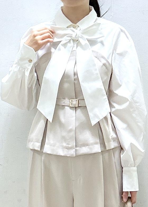 VIS【美easy】コンフォートボウタイドッキングシャツ/イージーケア・2WAYベージュ / F¥6,589レビューハリのある素材感でシルエットが美しく、スタイリッシュにしてくれます。シワになりにくく自宅でのお洗濯可能なのでお仕事用でローテーションしやすく、セレモニーにもピッタリです。釦が少し留めにくいので上から二番目の釦以外は留めたままでの着脱がおすすめです。