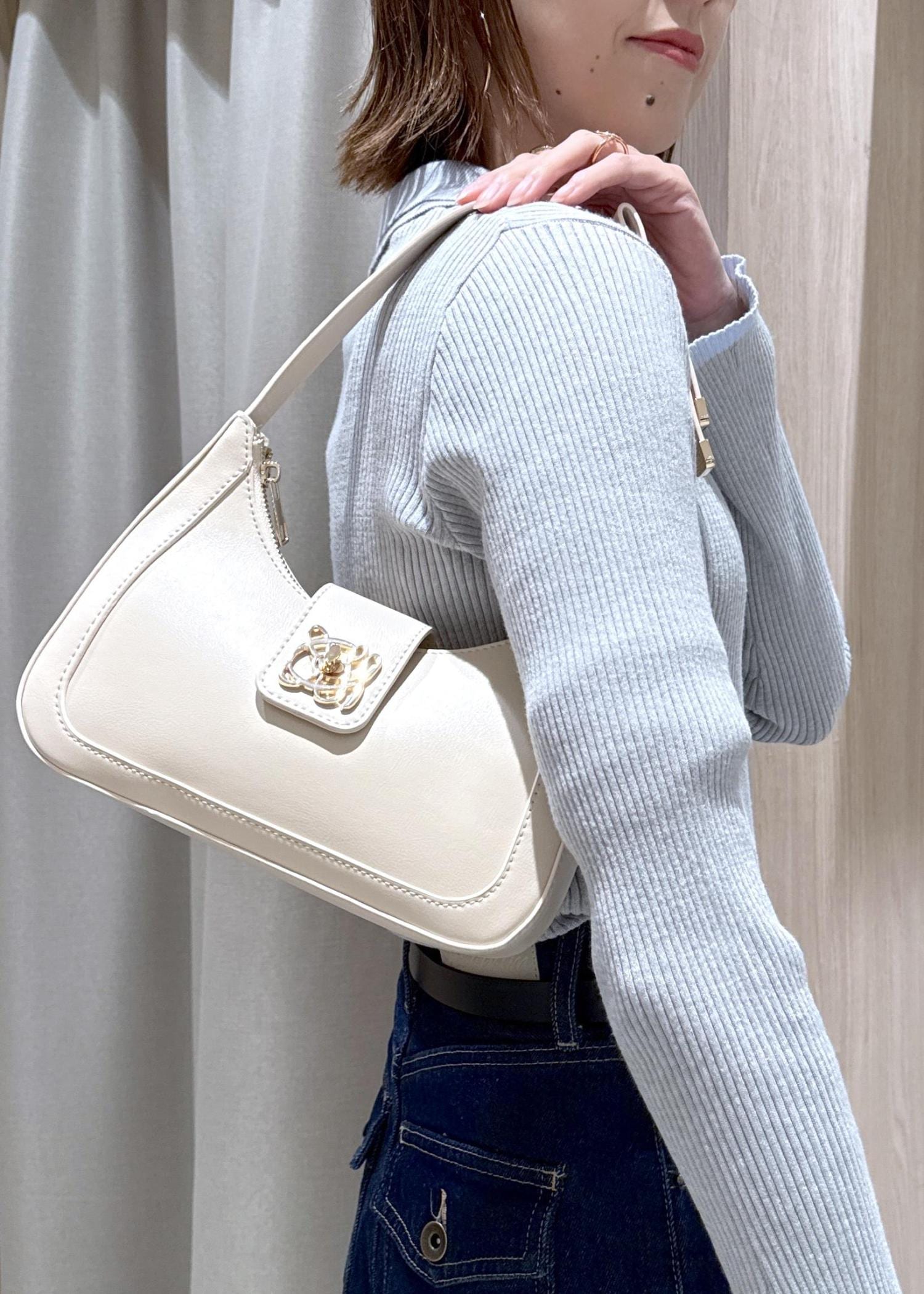 VIS【180℃美人見え】ハンドルリボンワンショルダーバッグ/新色追加キナリ / F¥5,929レビュー肩に掛けて持つとリボンが見えるデザインが可愛いバッグです♪