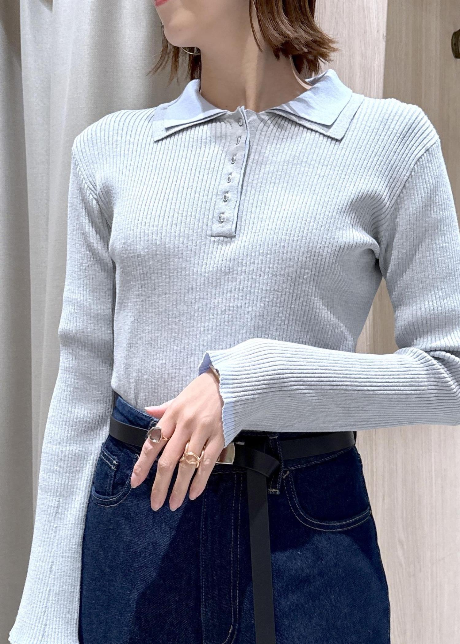 VISダブルカラーポロニットトップスライトグレー / F¥5,489レビュー身長166センチでお尻掛かる長さでした。
