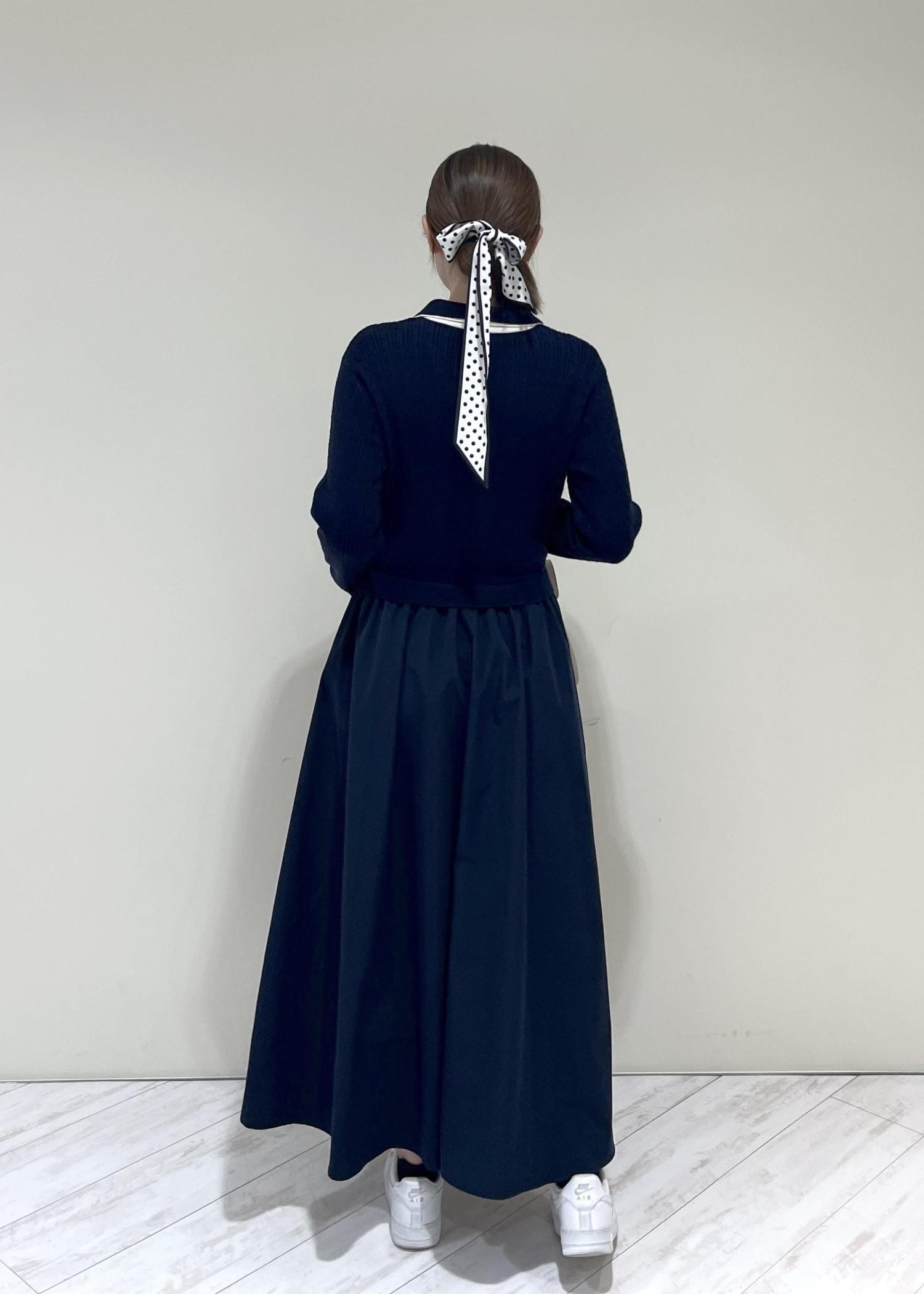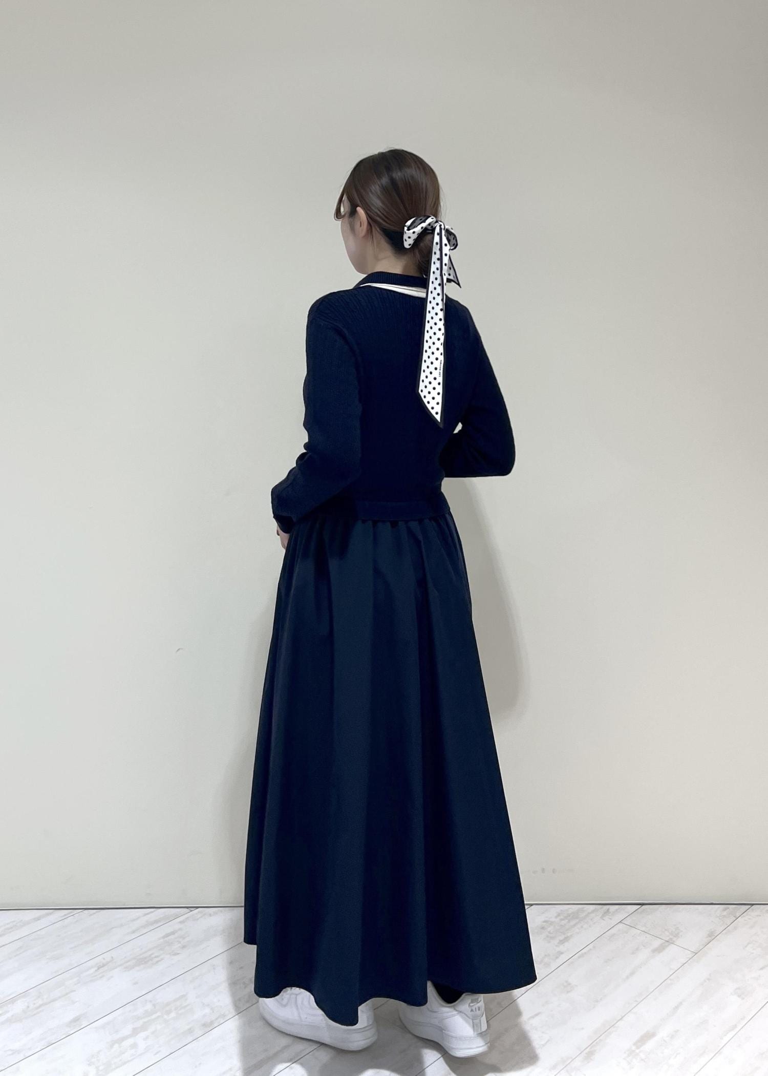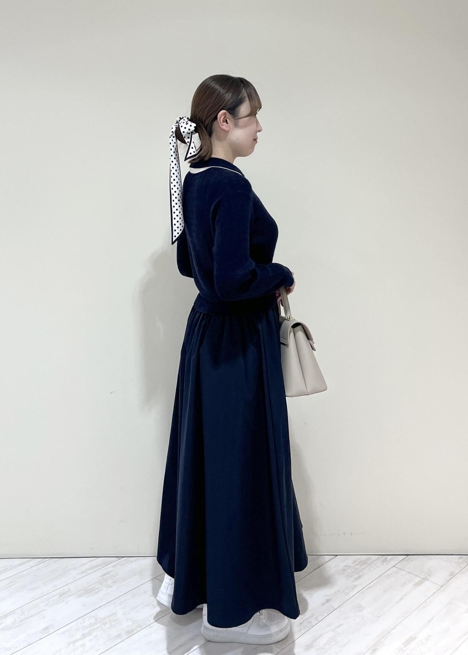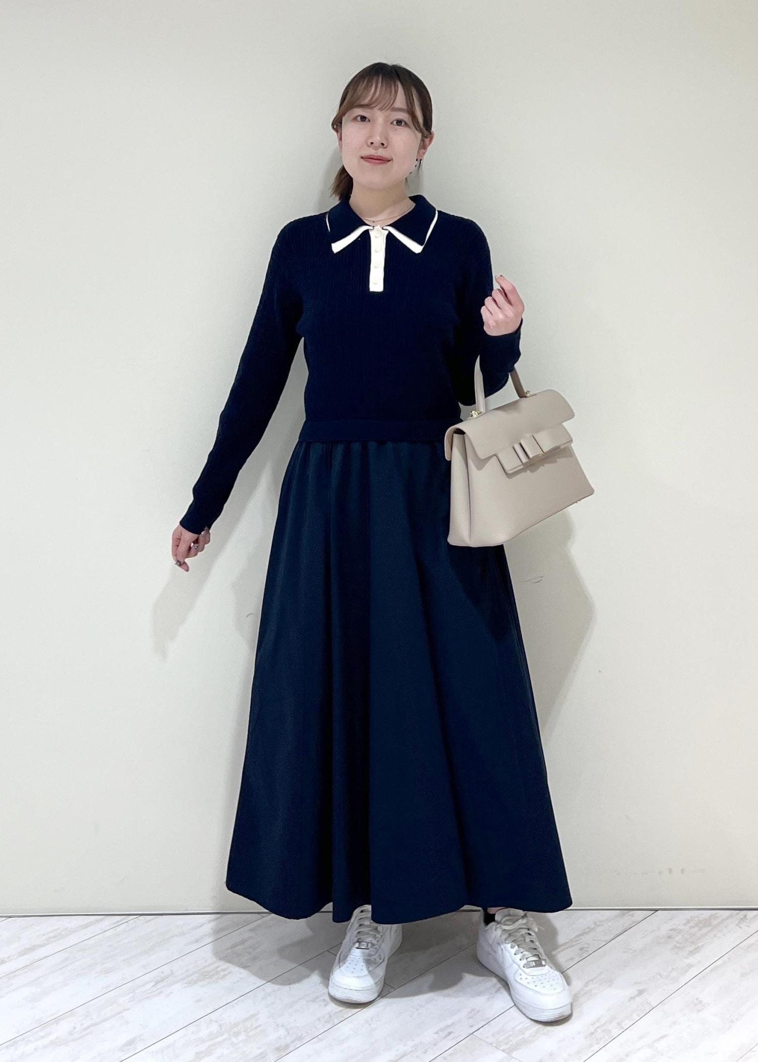 VISダブルカラーポロニットドッキングワンピースネイビー / F¥8,899レビュー着丈はくるぶし上にくる長さでした。ニットなのとウエストはゴムなので着心地抜群です!程よくゆとりのあるサイズ感でした♡