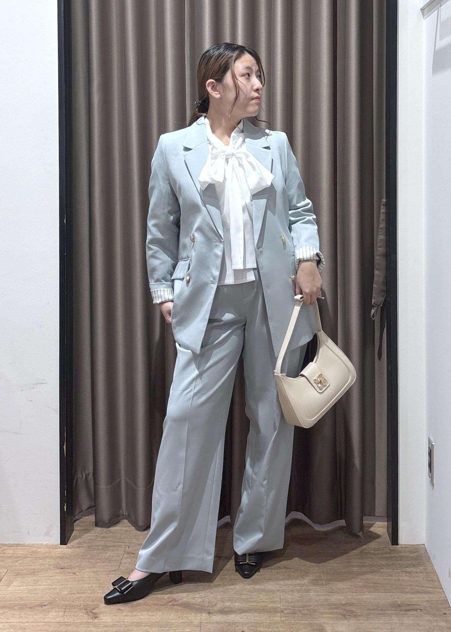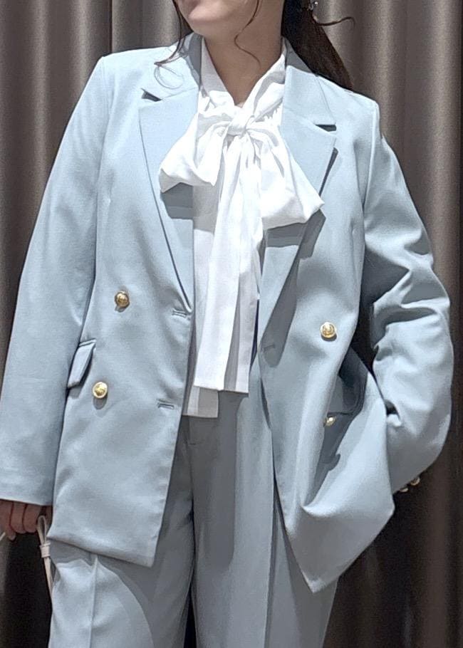 VIS【美easy】コンフォート金ボタンジャケット/イージーケア・UVケア・セットアップ対応ライトグリーン / S¥8,899レビュー153cm、Sサイズ着用でおしりが隠れる丈感です!