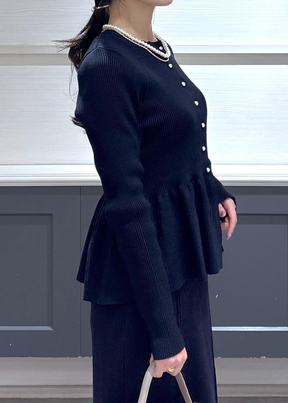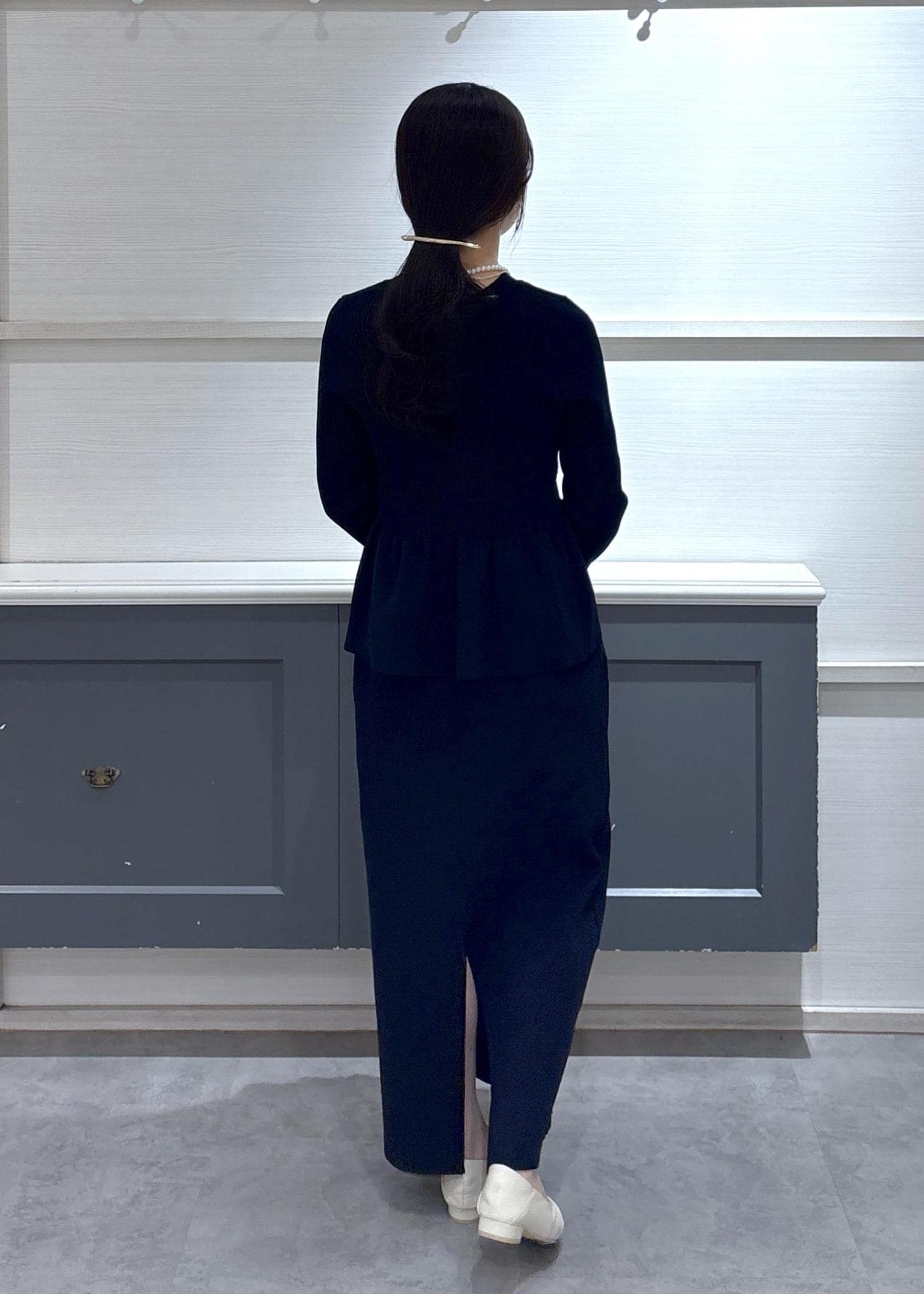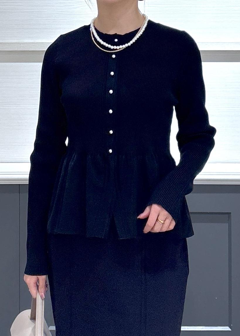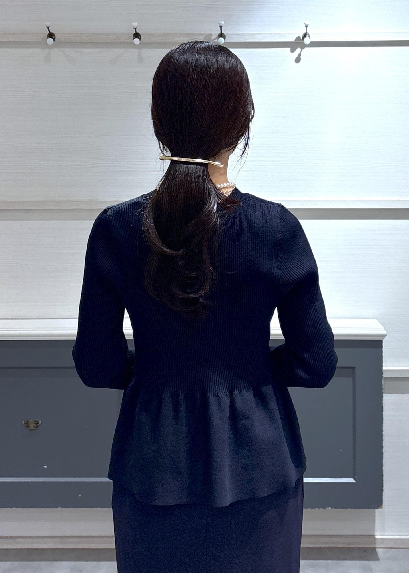 VIS【美得】ペプラムニットカーディガン/イージーケアネイビー / F¥5,929レビュー156cmでヒップにかかる丈感でした。