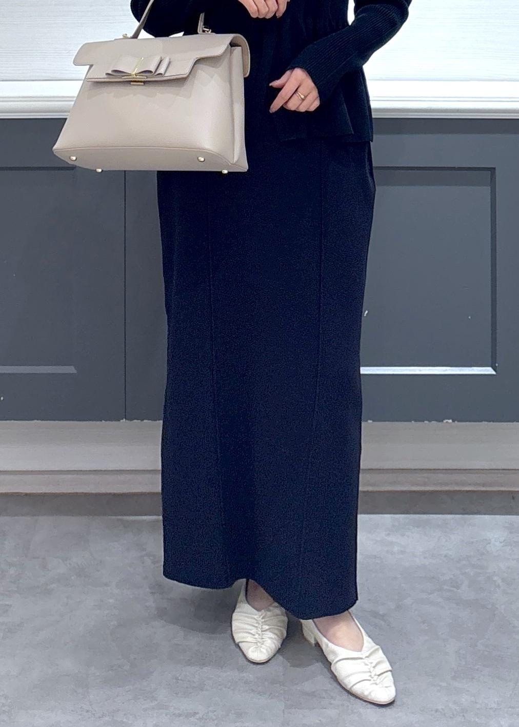 VISピンタックデザインニットスカートネイビー / F¥5,929レビュー156cmで足首にかかる丈感でした。