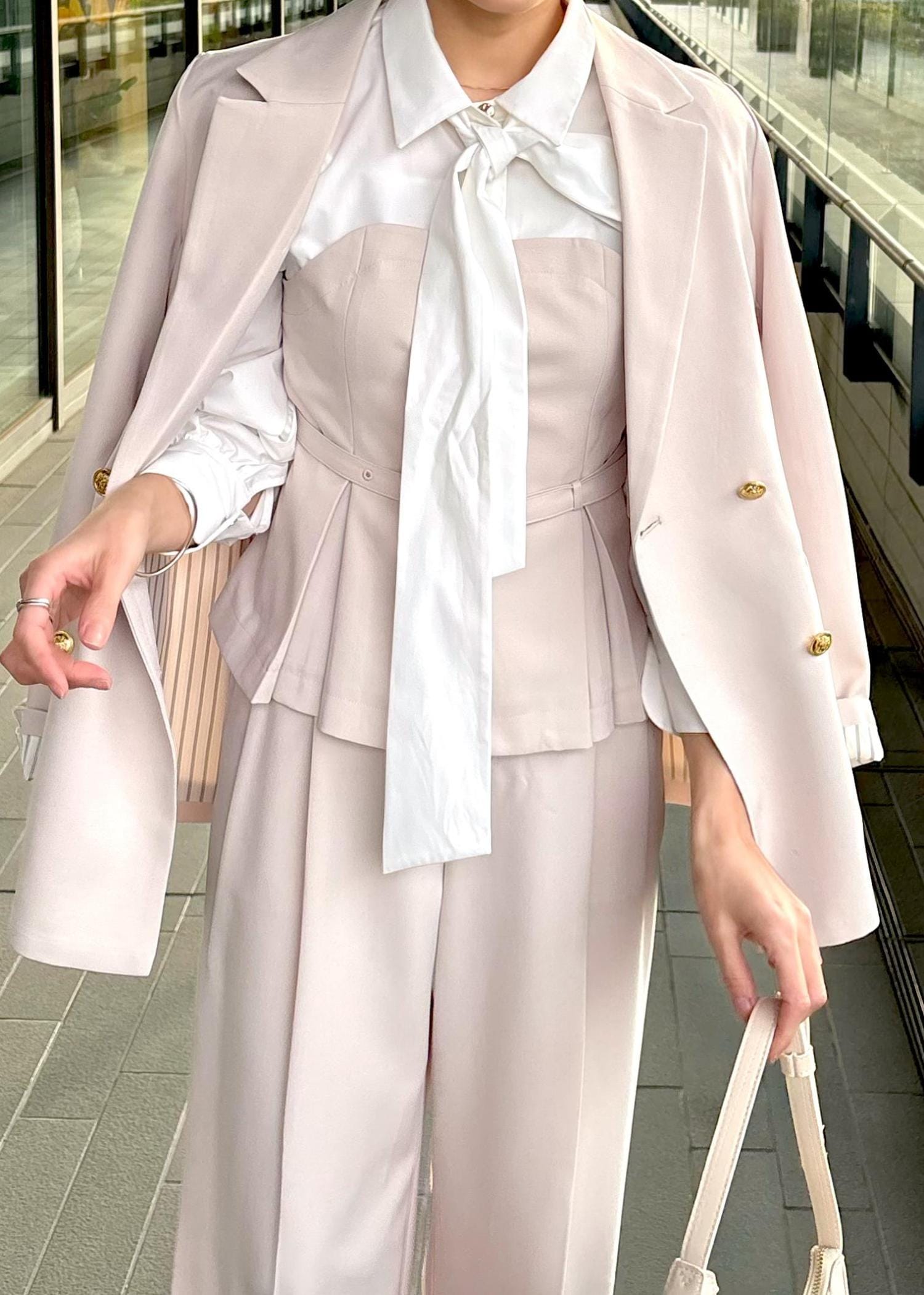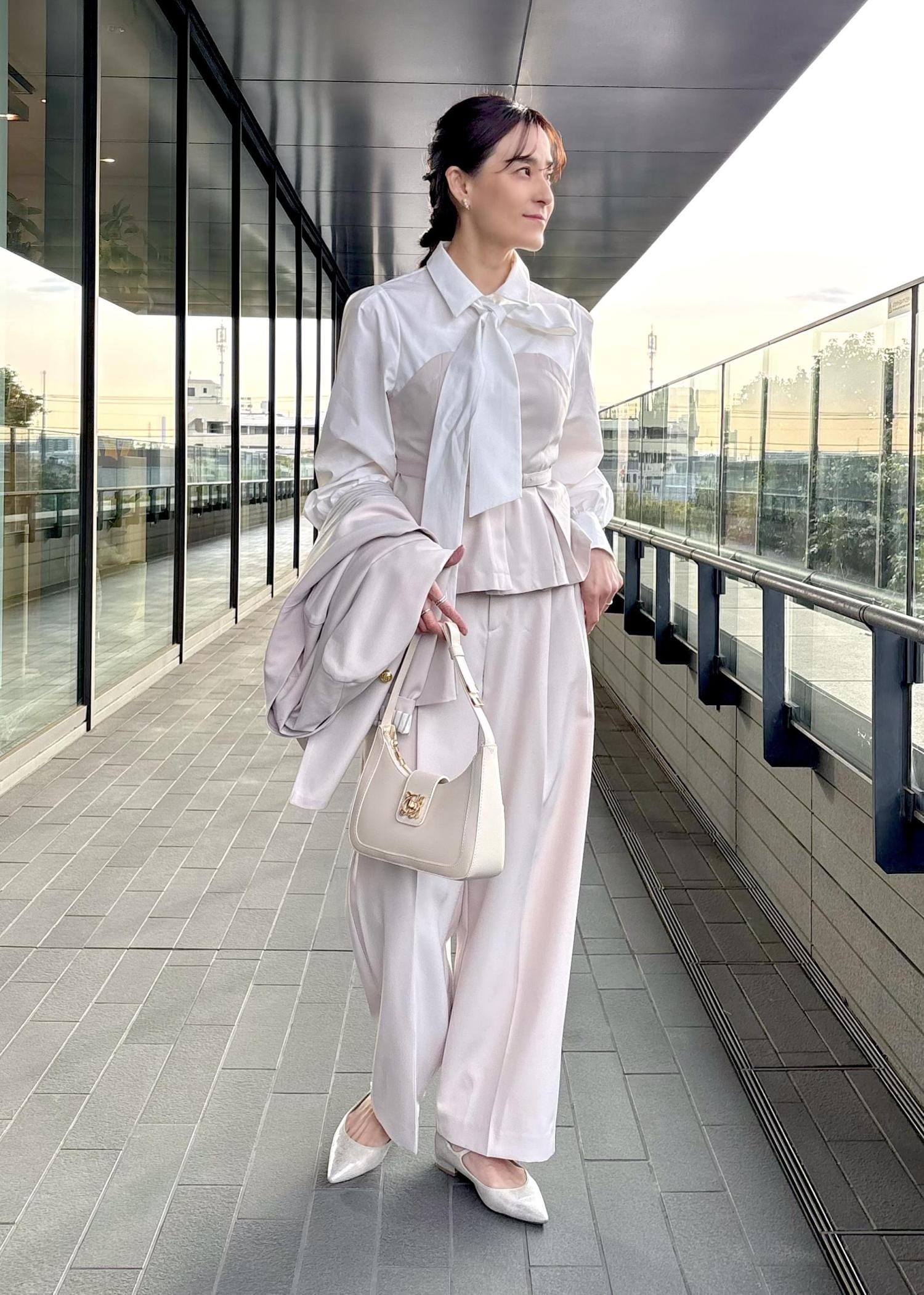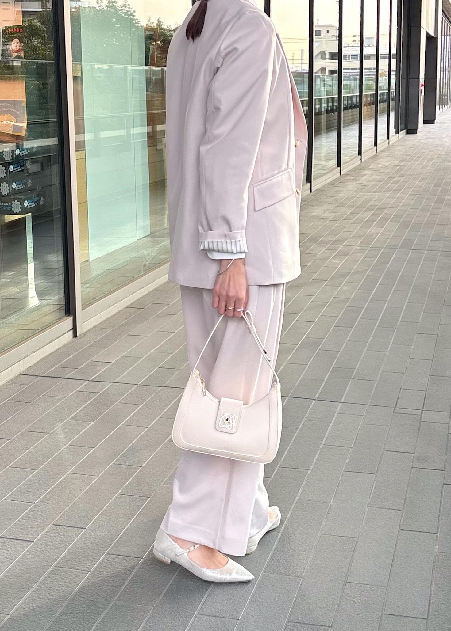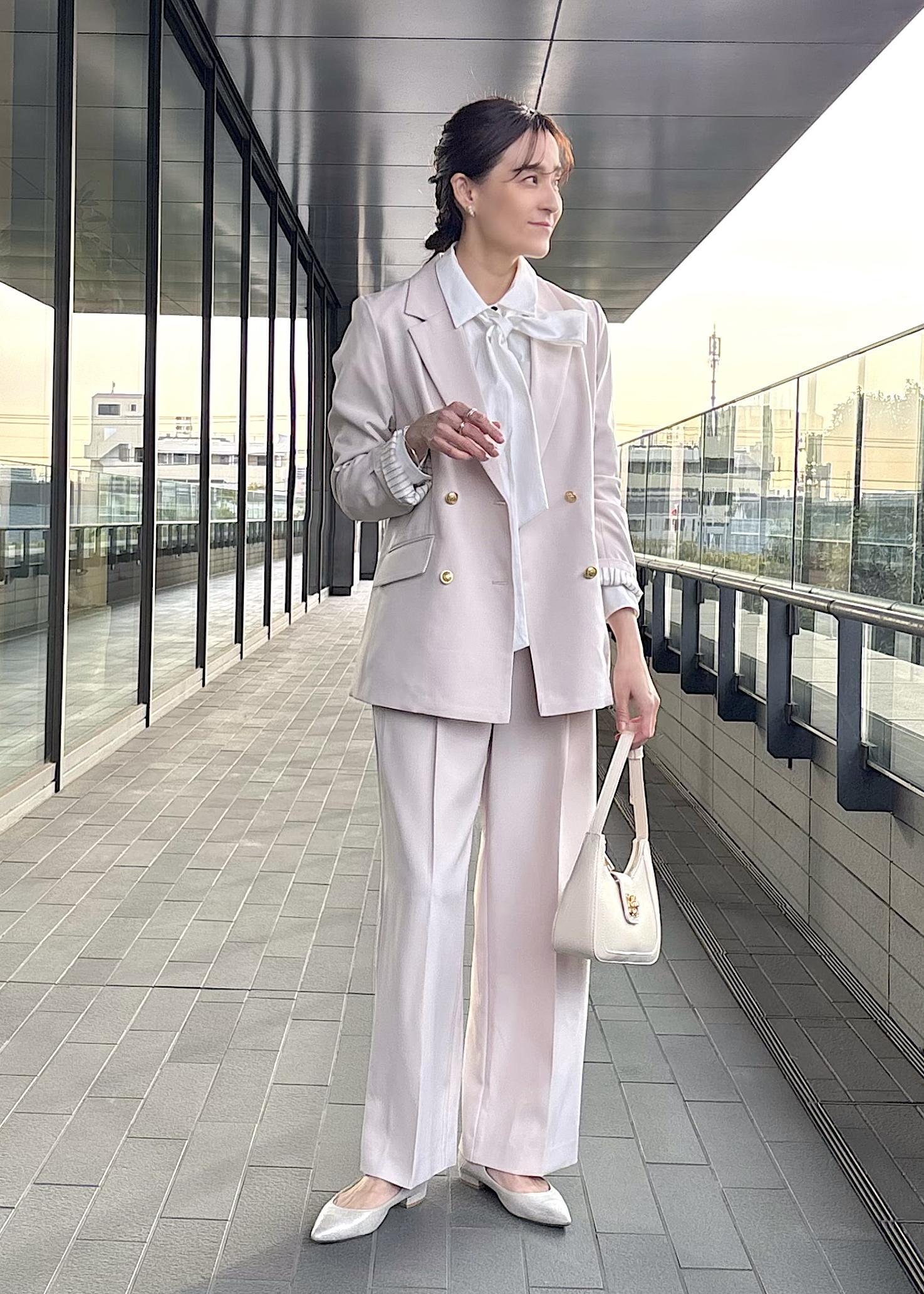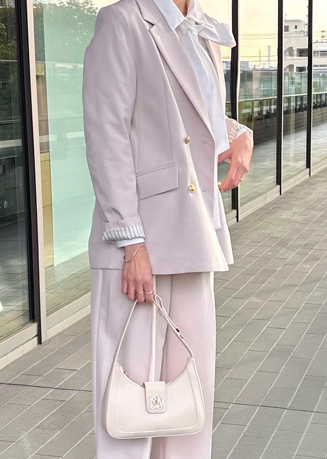 程よいハリ感とリボン使いがきちんとさを出してくれます。リボンは簡単に取り外しができるので、印象を変えられますよ。
