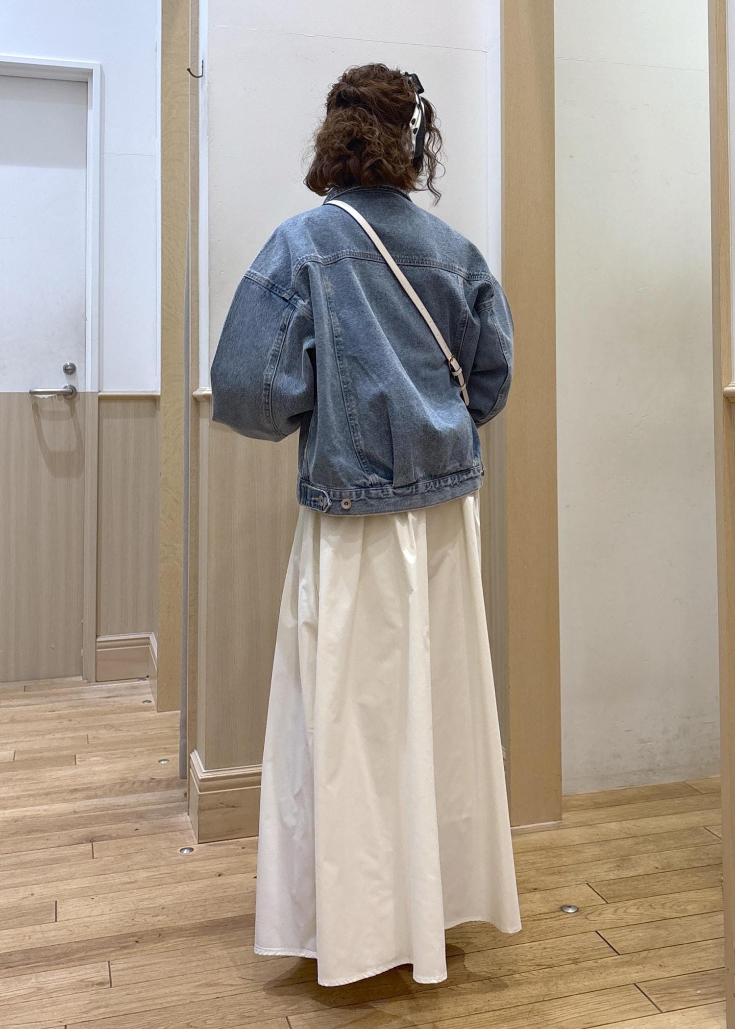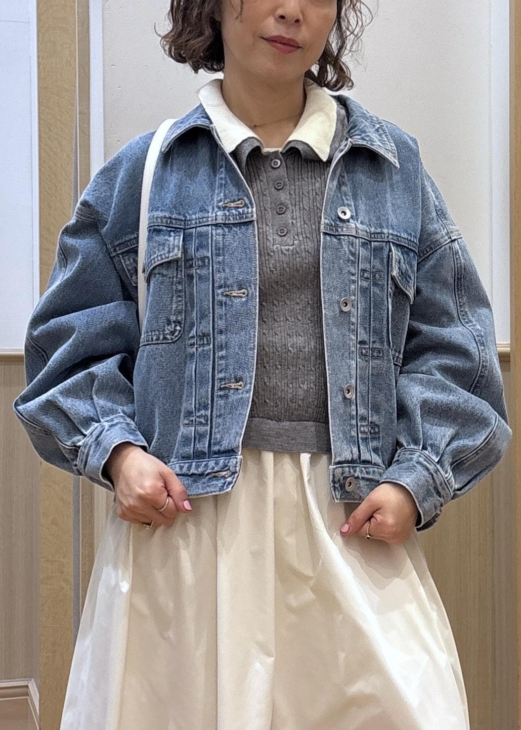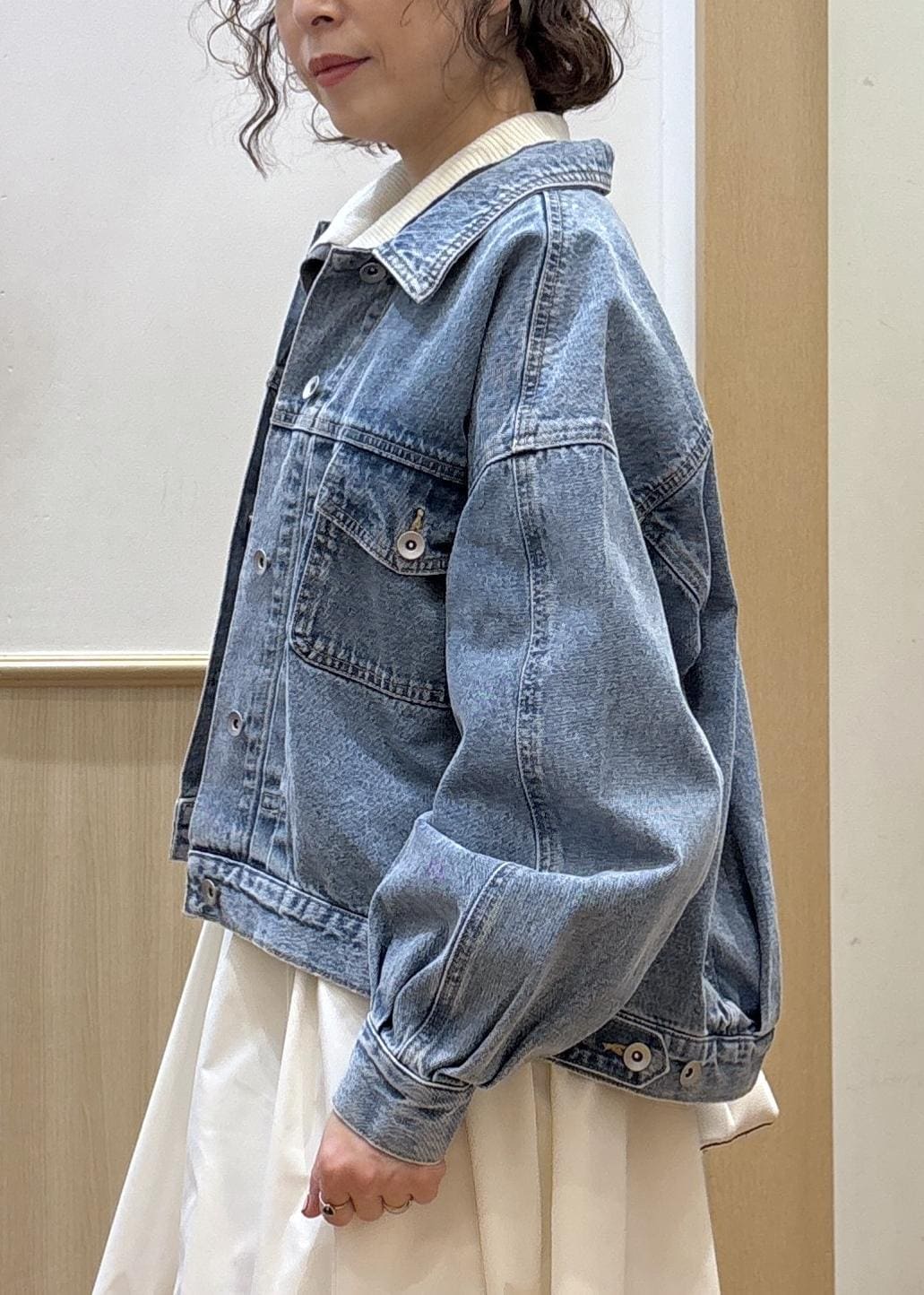 VISボリュームスリーブデニムジャケットサックス / F¥9,999レビュー153cmでお尻がすっぽり隠れる丈感です。