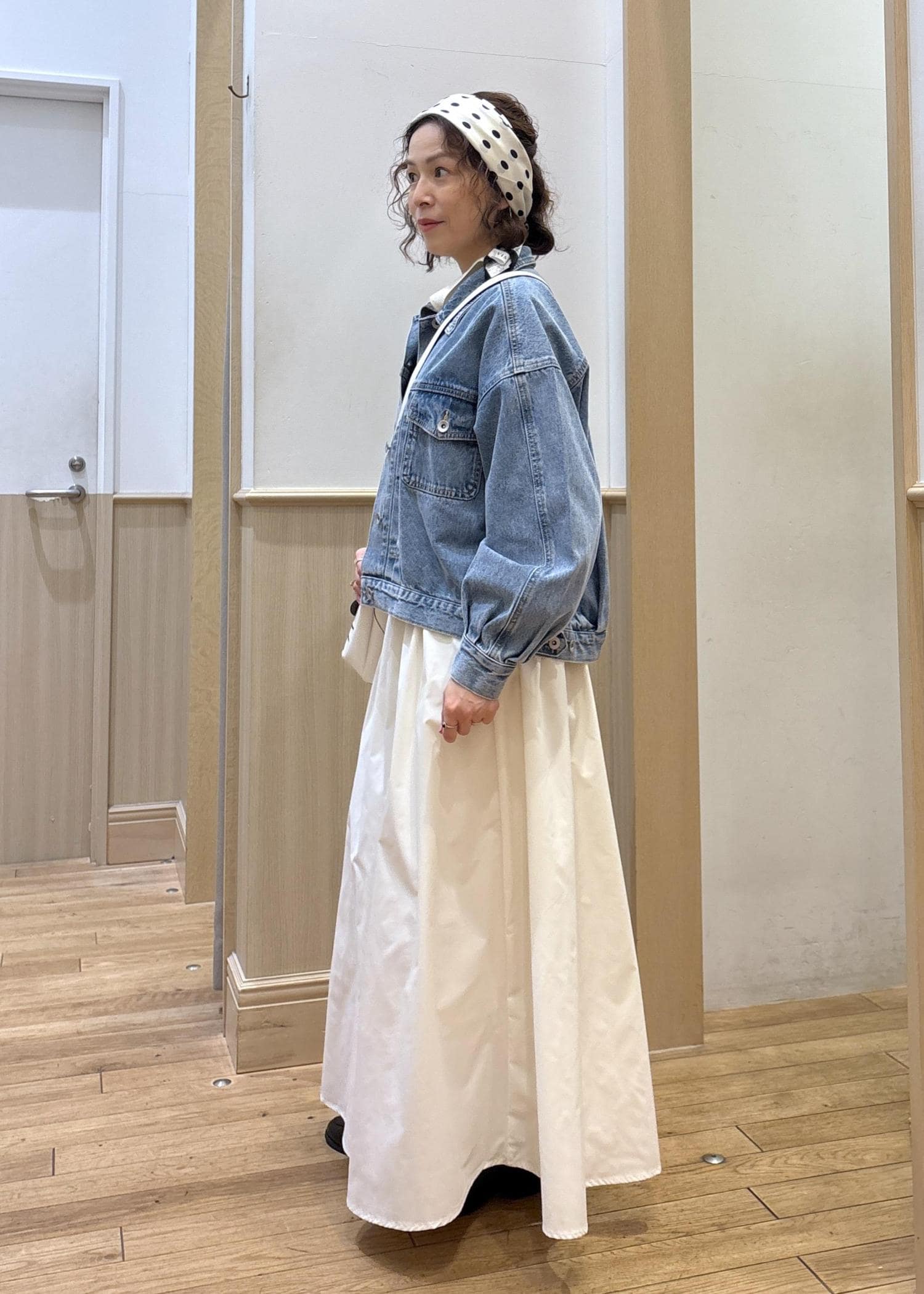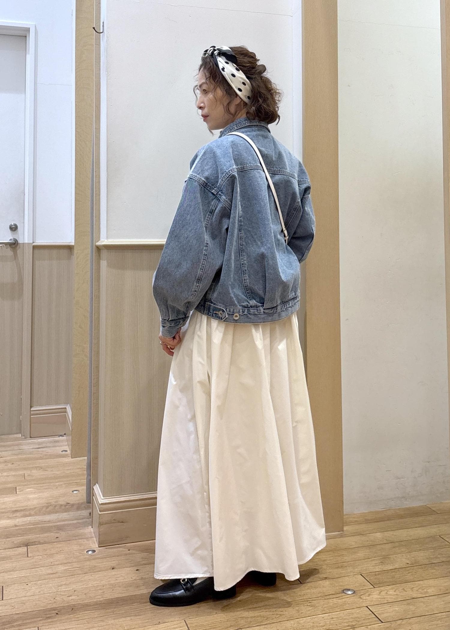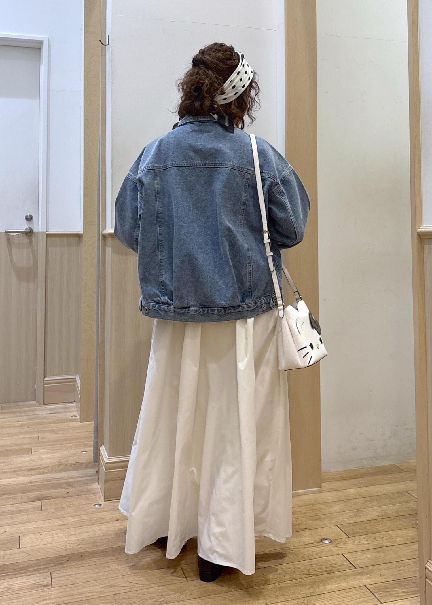 VISボリュームスリーブデニムジャケットサックス / F¥9,999レビュー153cmでお尻がすっぽり隠れる丈感です。