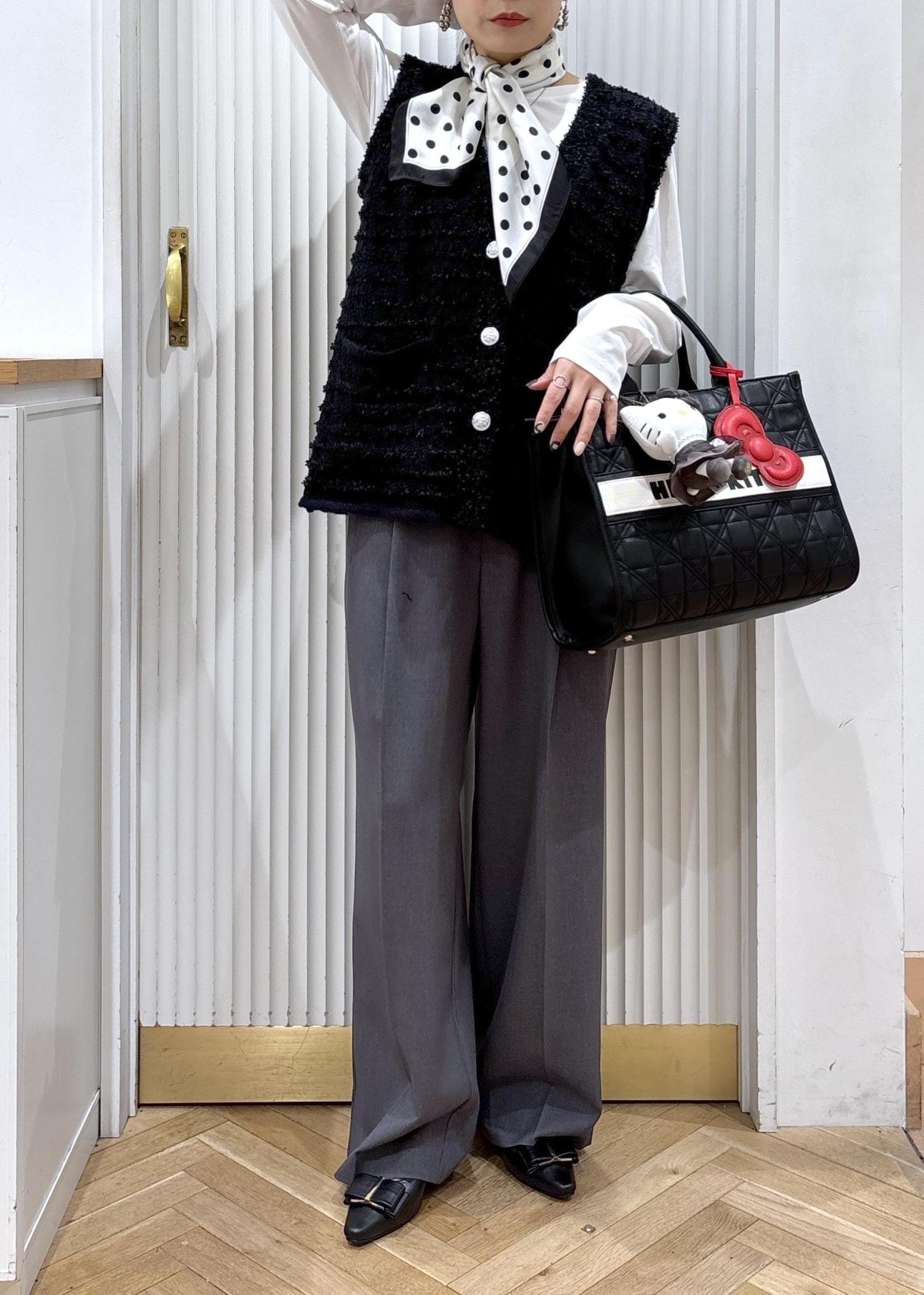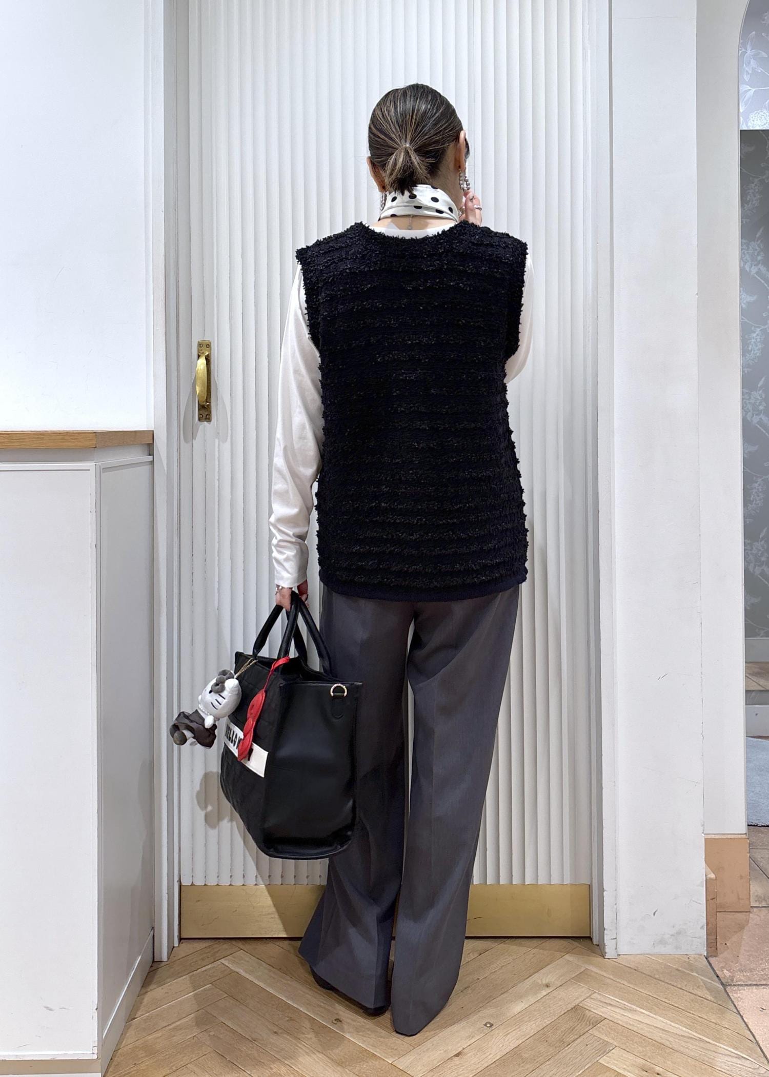 役員を決めたり保護者の集まりがある大切なシーンに、ツイードを使った上品なモノトーンスタイルで♡