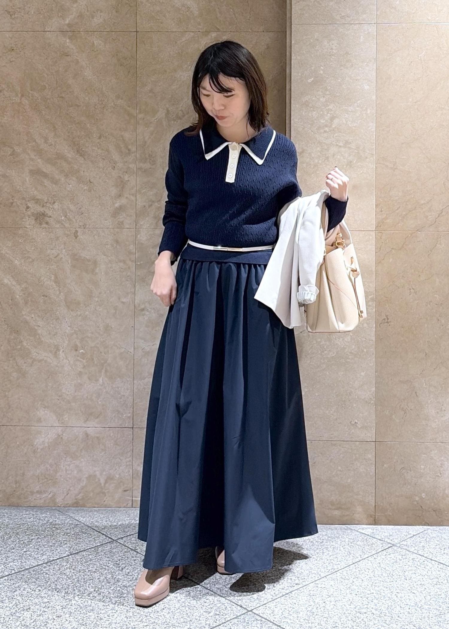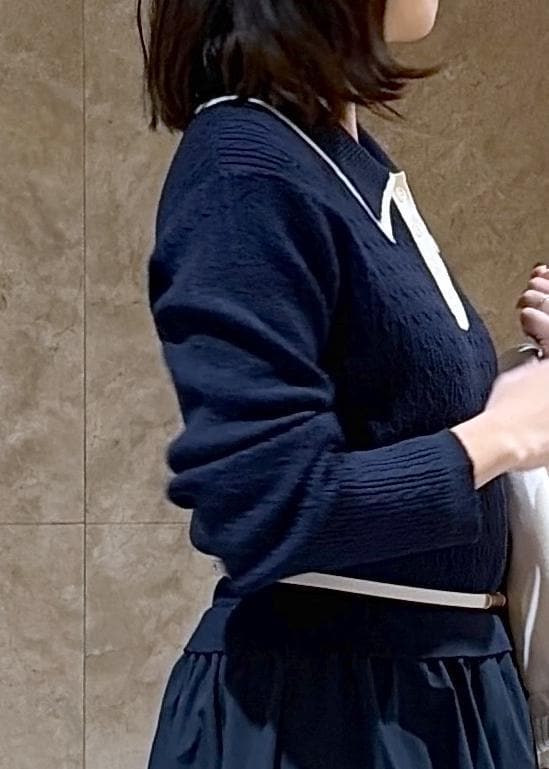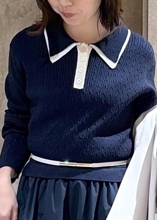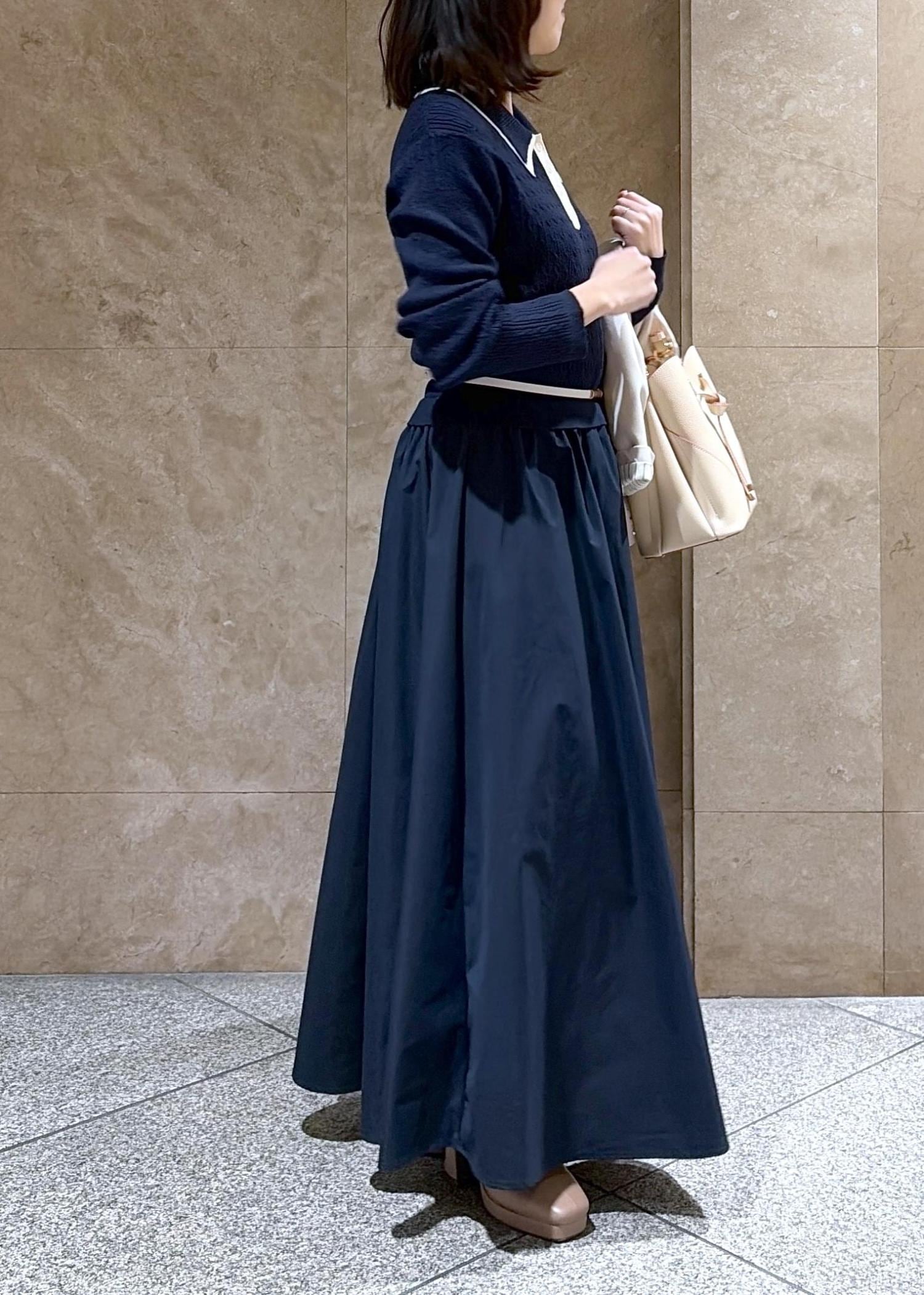 VISダブルカラーポロニットドッキングワンピースネイビー / F¥8,899レビュー身長149cmでFサイズを着用し、地面にギリ付かないぐらいの丈感でした!