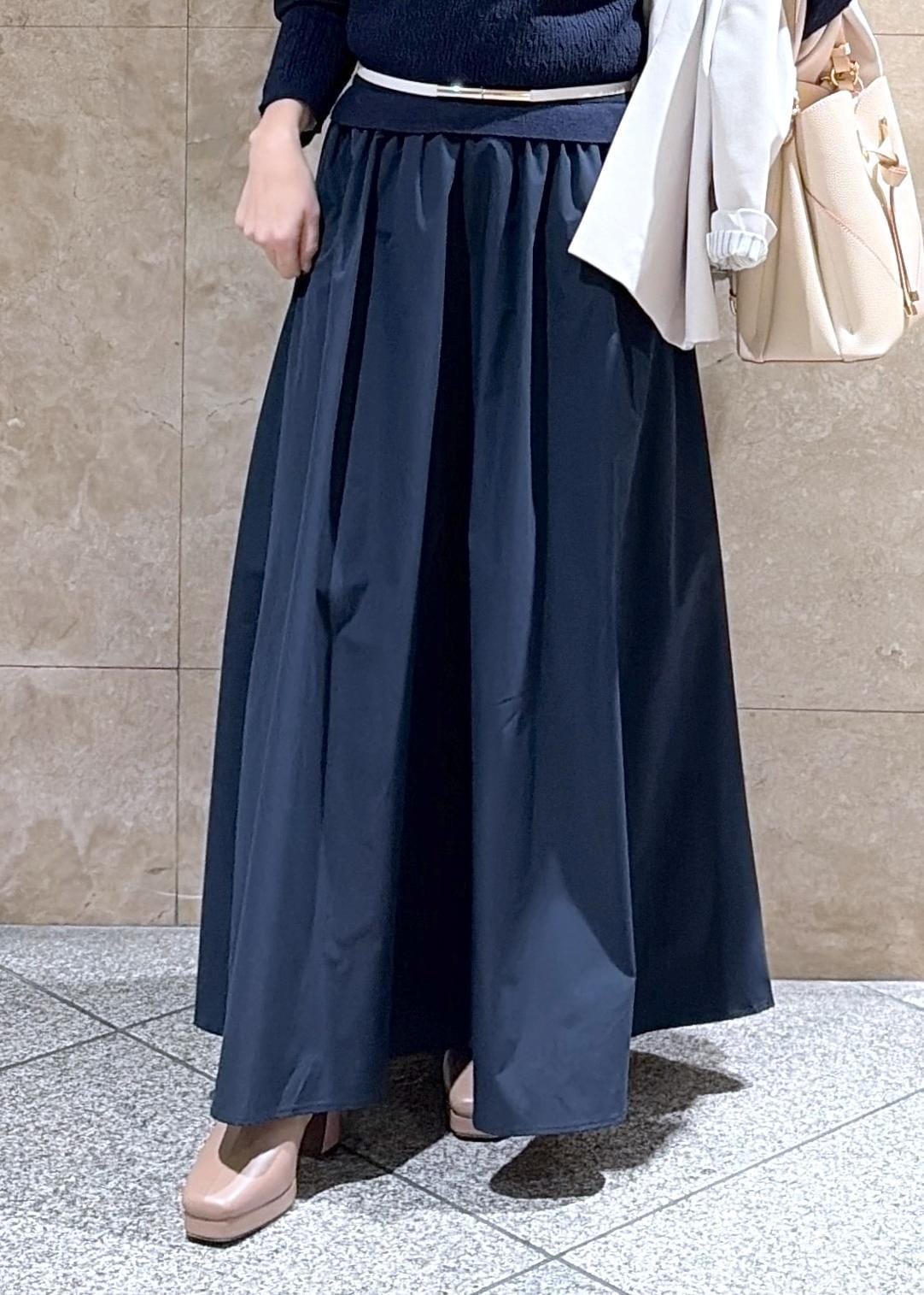 フラットシューズやスニーカーだと、ギリギリなので少しヒールがある靴を合わせるのがオススメです◎
