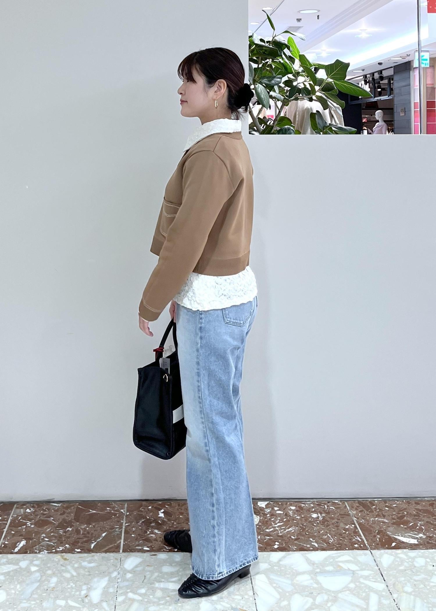 クシャッとしたデザインが可愛く着丈が長いボトムにあわせるとポイントになります。