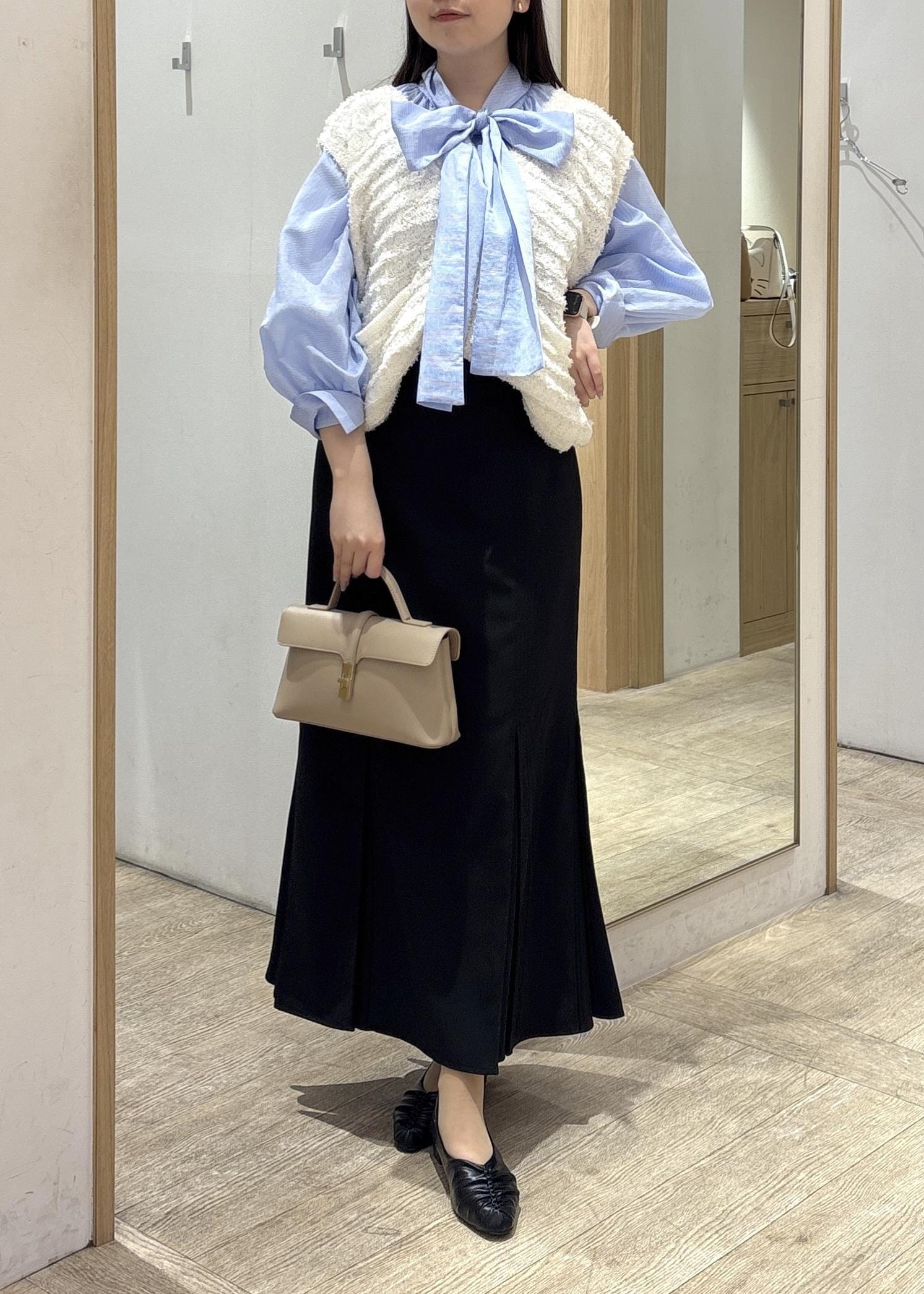 VIS前後2WAYボリュームボウタイブラウス/イージーケアサックス / F¥5,929レビュー大きめのボウタイが主役になるブラウスで、前後どちらでも着られる2WAY仕様が嬉しいアイテムです。
