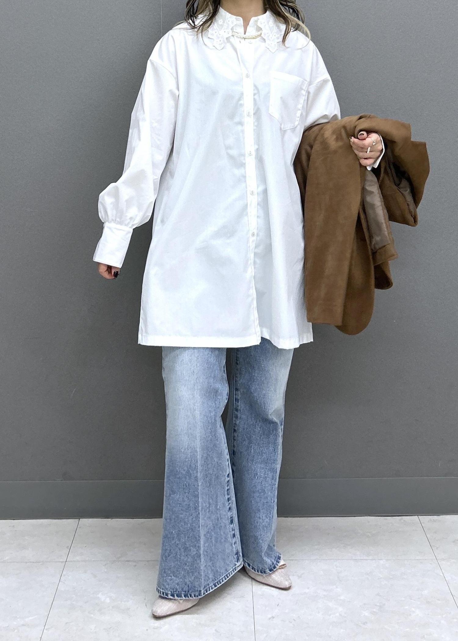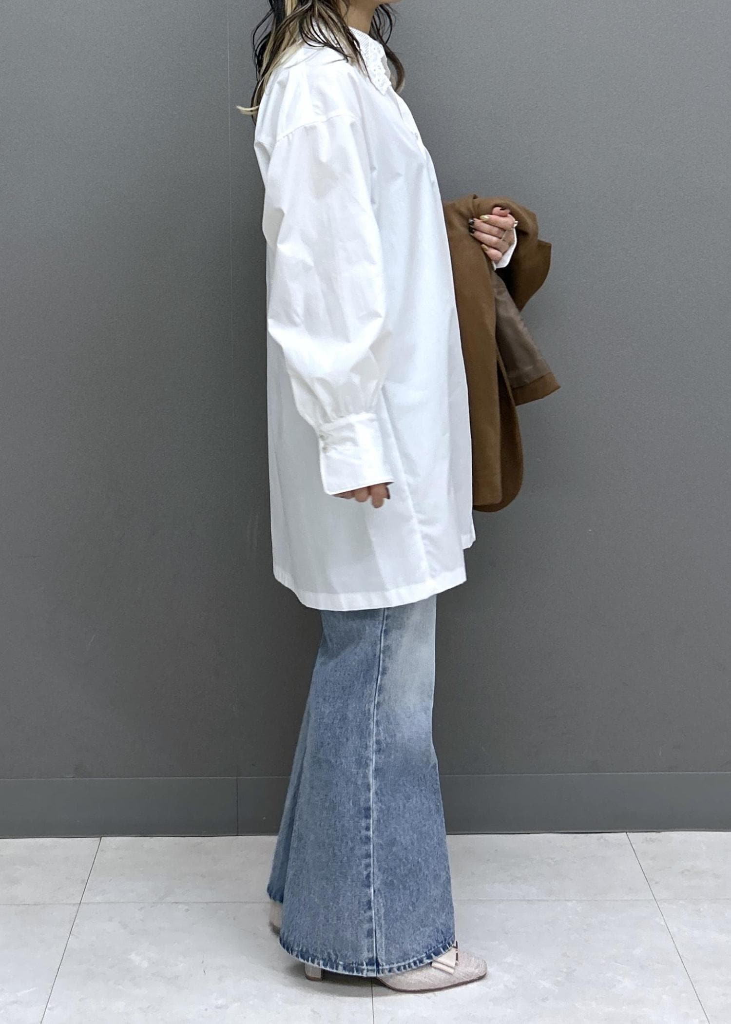 袖幅もゆるっとしているので、ボリュームのあるシャツを合わせても余裕を持って羽織れました◎