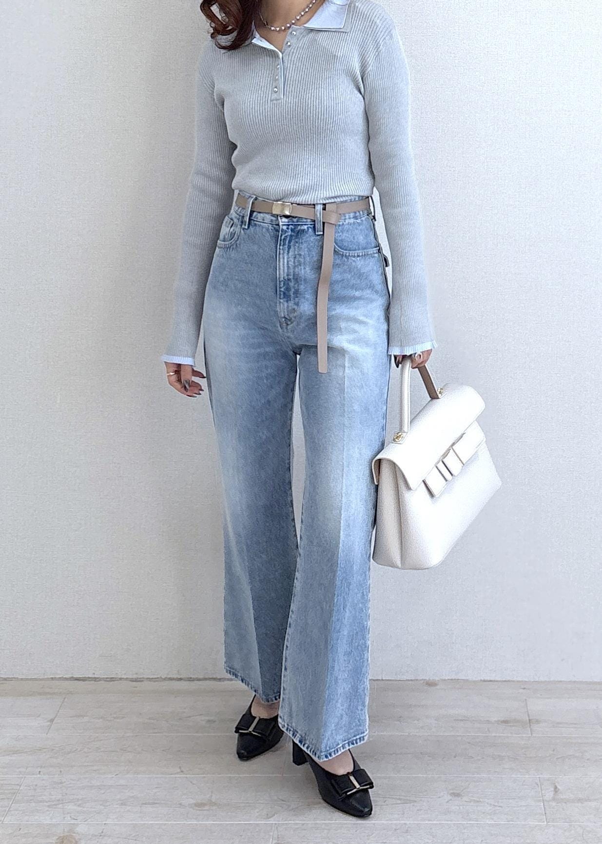 落ち感のある素材で、ワイドでもすっきり見えます。 -