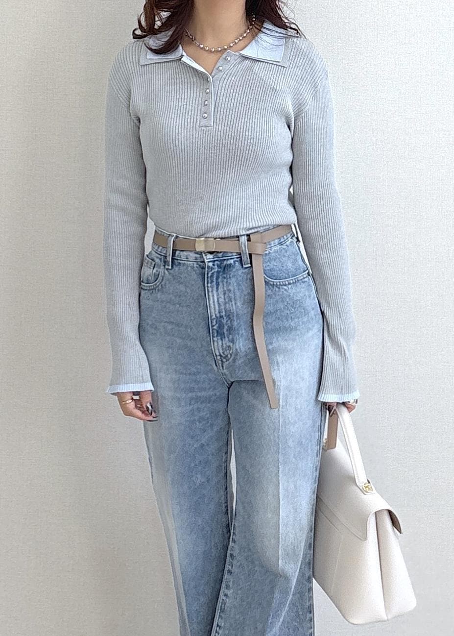 VISダブルカラーポロニットトップスライトグレー / F¥5,489レビュー首元が詰まった洋服は苦手なのでボタンを少し開けて着用しました。顔周りがスッキリ見えて華奢な印象に仕上がりますが、ダブルカラーで華やかさはしっかり押さえられていて盛れます♡