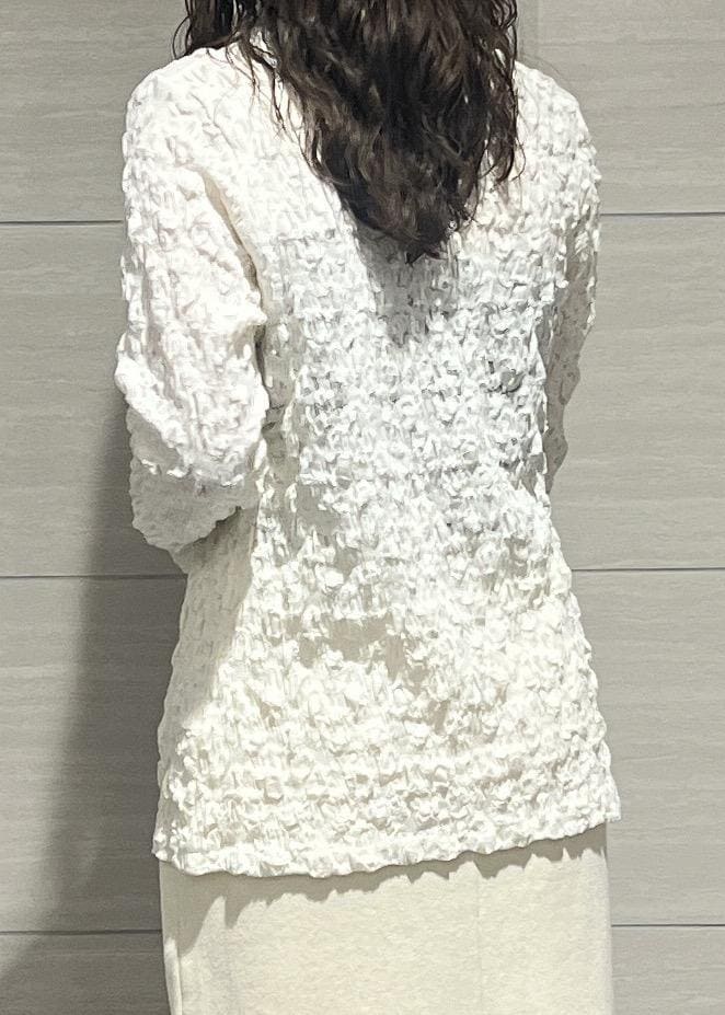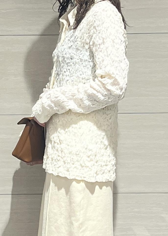 VISストレッチレースジャガード衿付きカーディガンオフホワイト / F¥5,489レビュー152cmでお尻周りが隠れる丈感です。透け感のあるレース素材が春らしく、1枚着でも羽織りでも着回し抜群のアイテムです✨