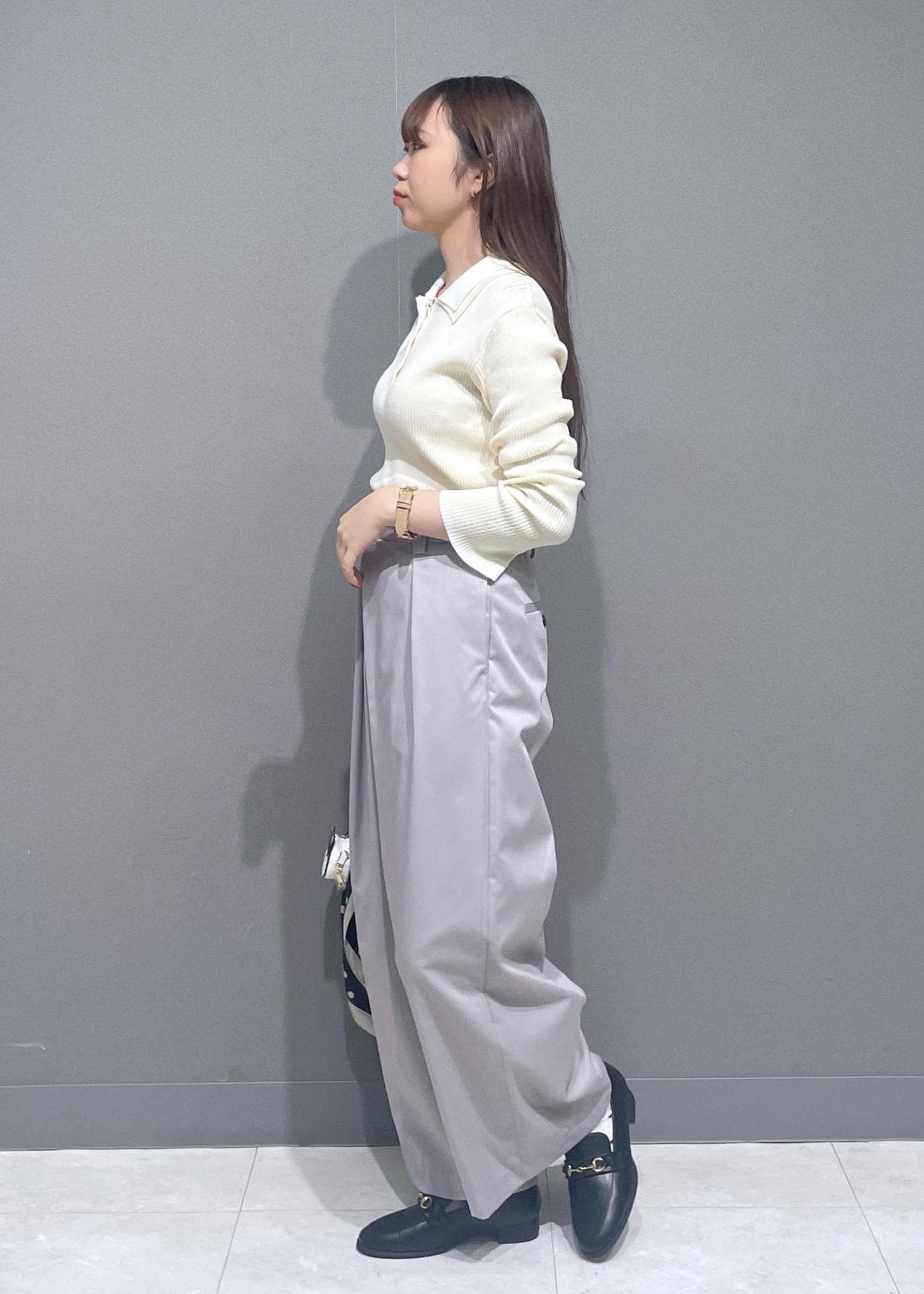 VISフロントタックデザインワイドパンツライトグレー / M¥6,589レビュータックがしっかりとはいっており、かなり幅が広めのワイドパンツです。