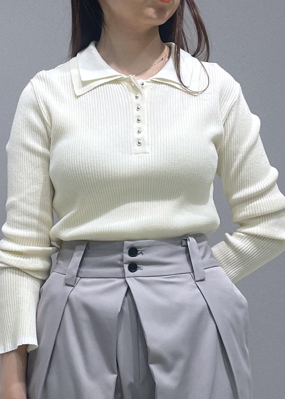 VISダブルカラーポロニットトップスオフホワイト / F¥5,489レビューダブルカラーの配色がかわいいポロニットです。袖口も襟と同じ配色になっており、コーデのアクセントになります