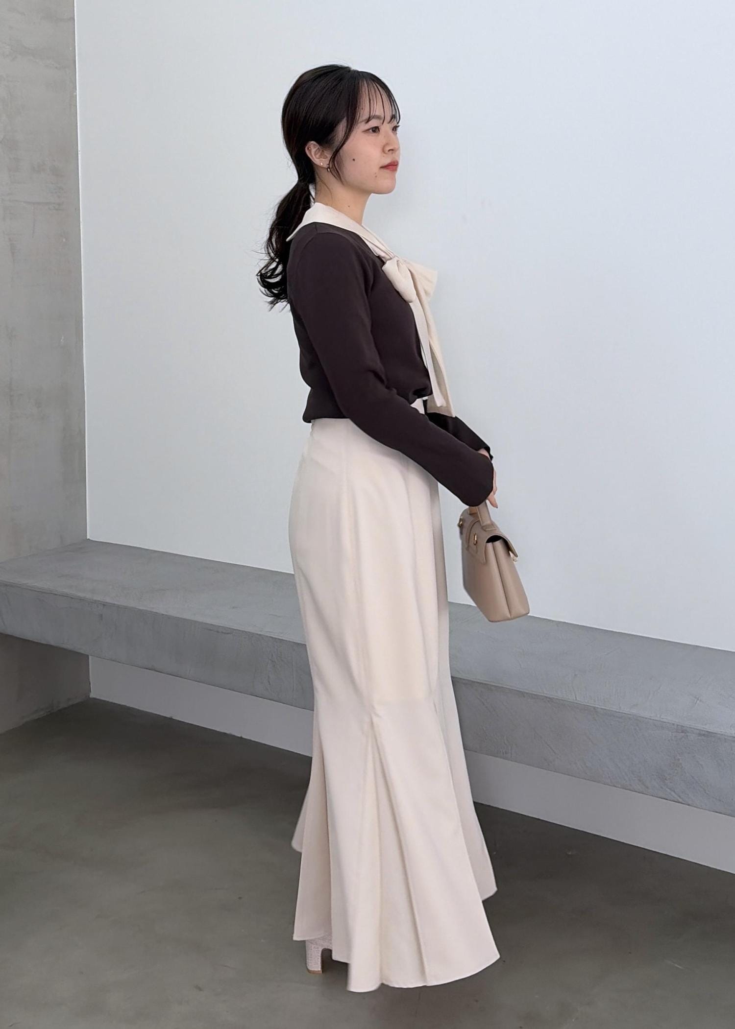VISボックスプリーツマーメイドスカート/イージーケア・防シワベージュ / S¥6,589レビュー153センチSサイズ着用。