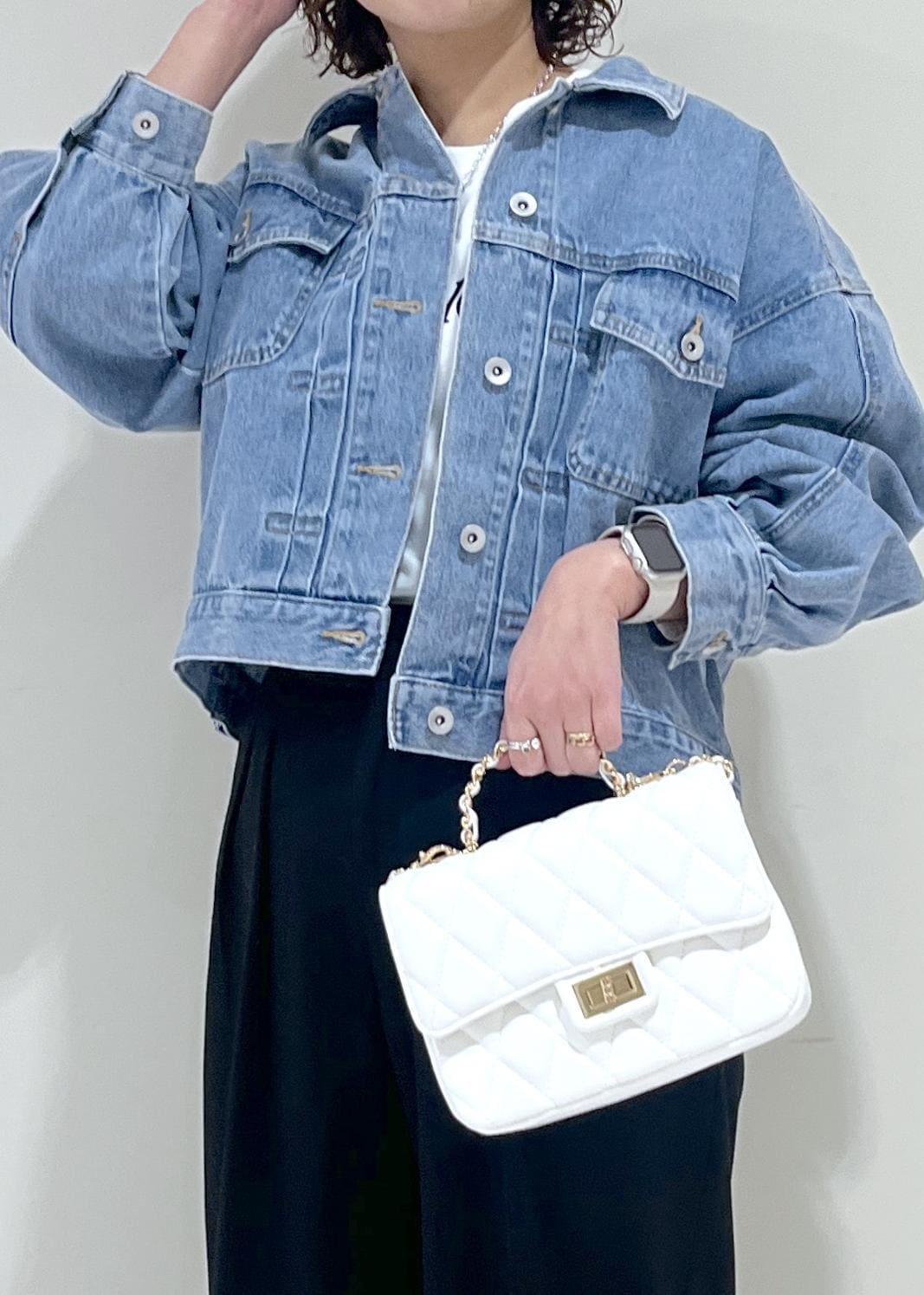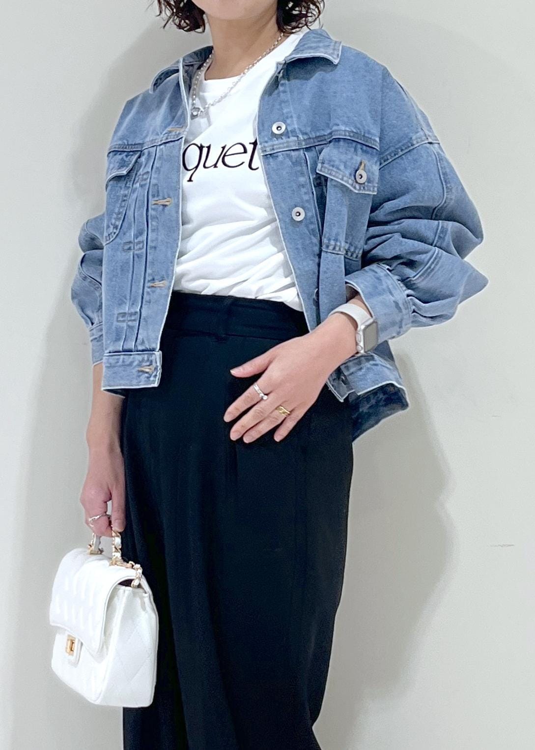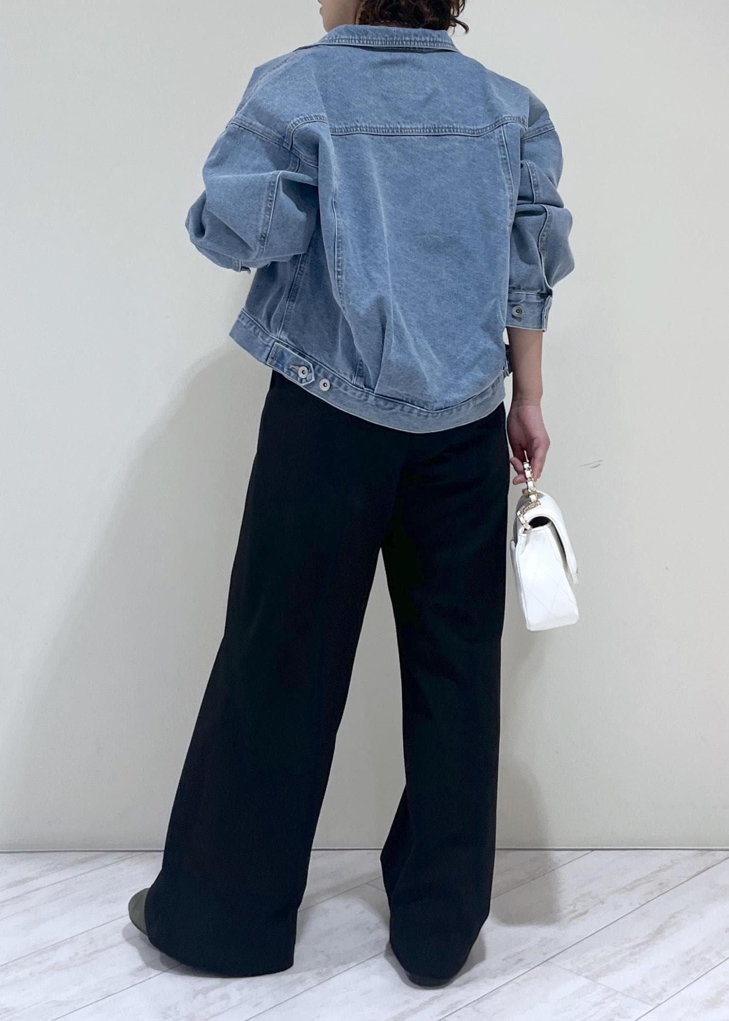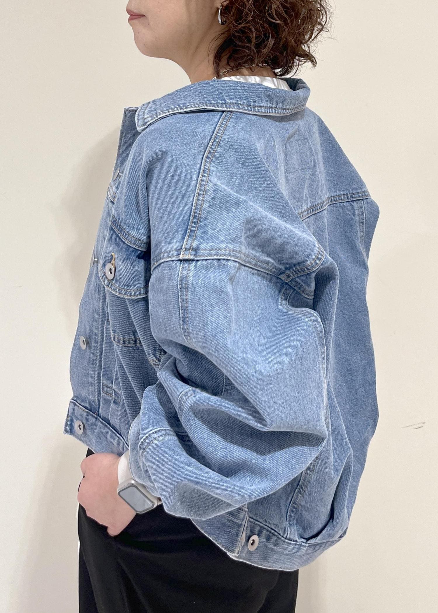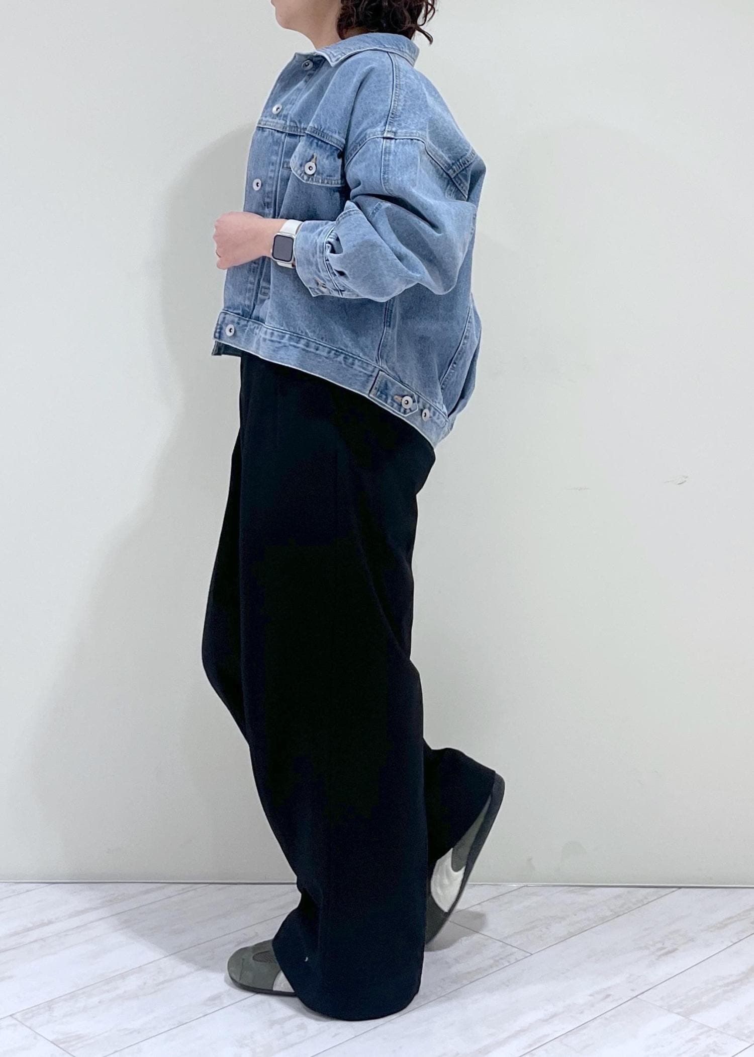 デニムですが、比較的柔らかく春ニットなどにも羽織れます。 -