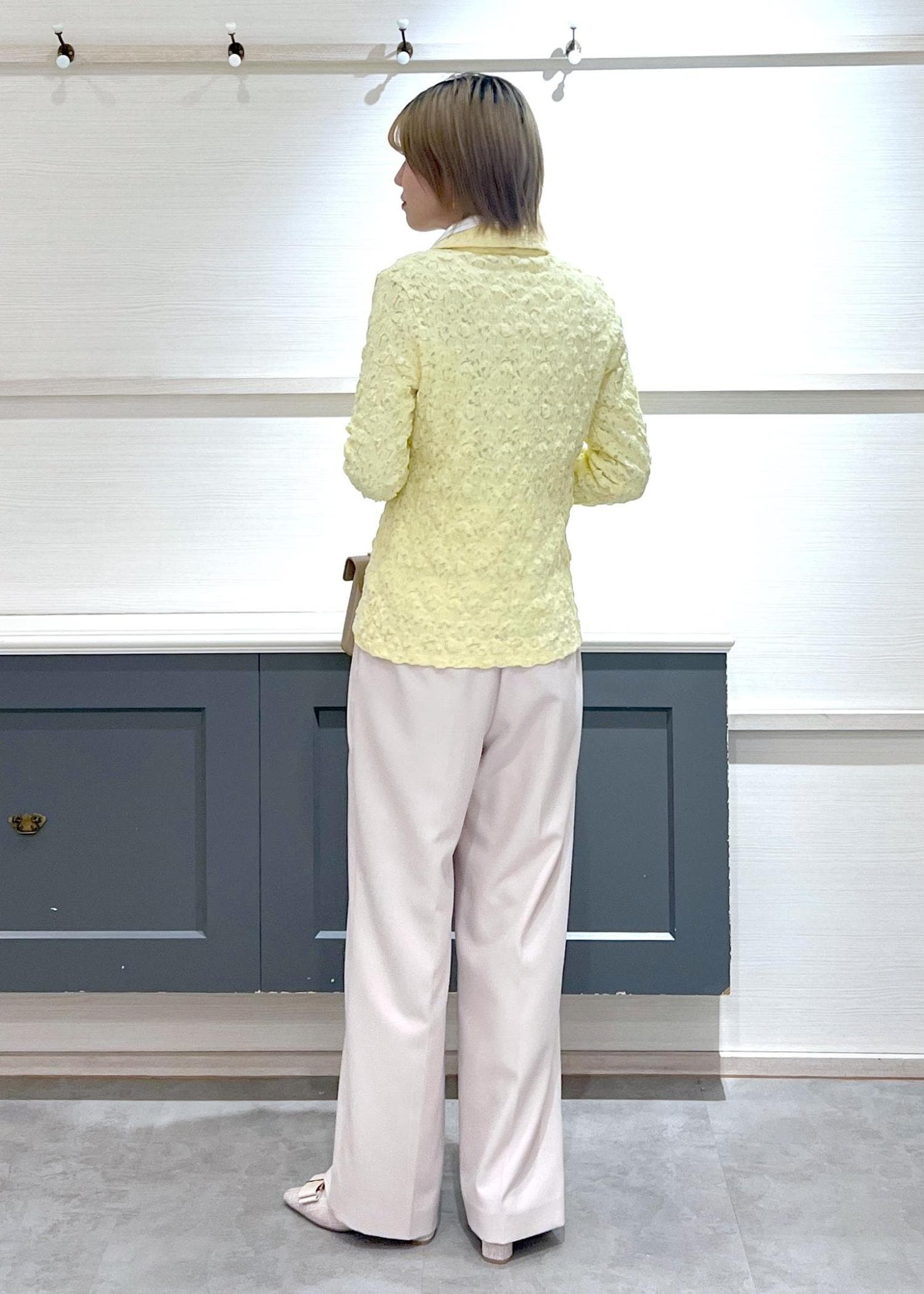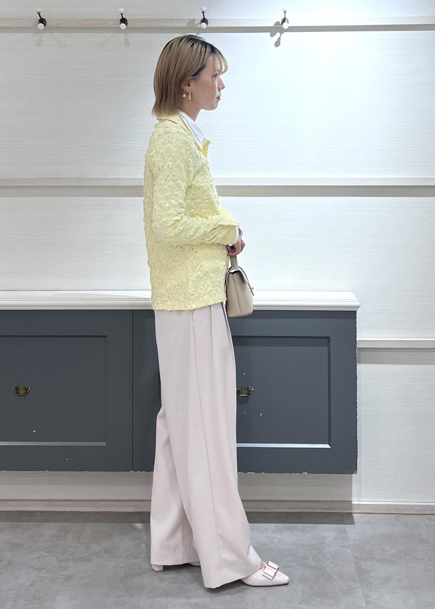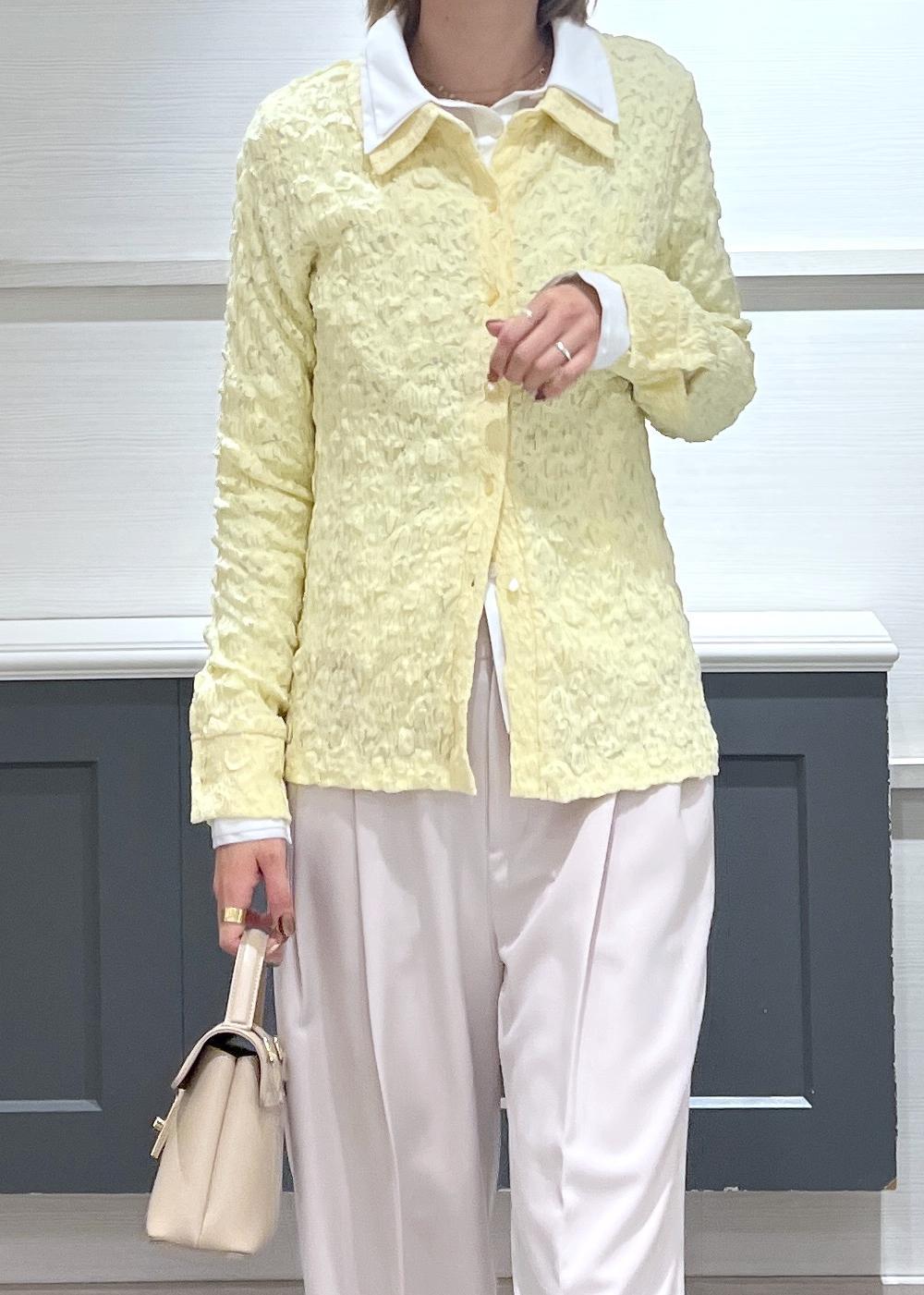 イエローのレースカーディガンを主役に春コーデを組んでみました。