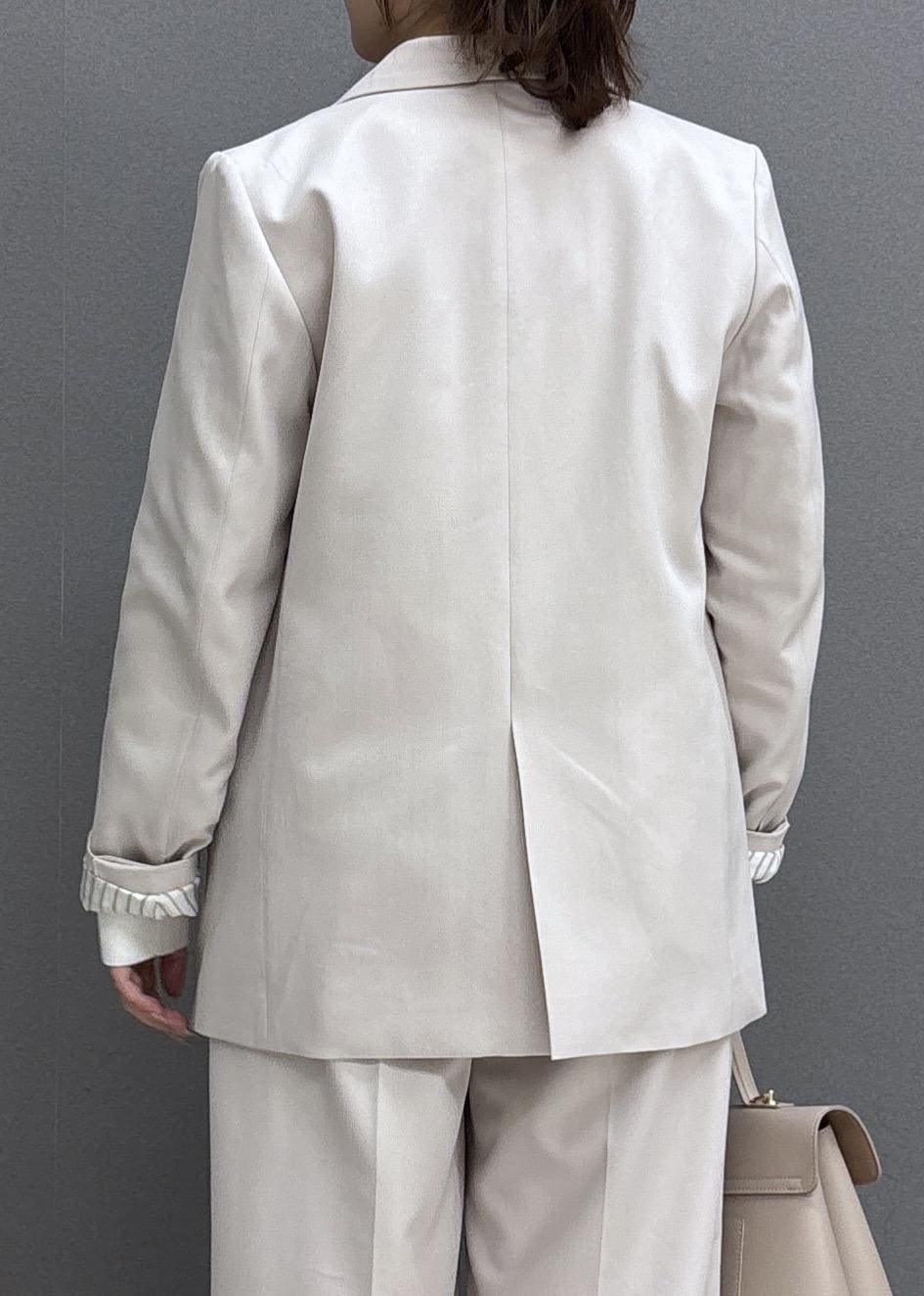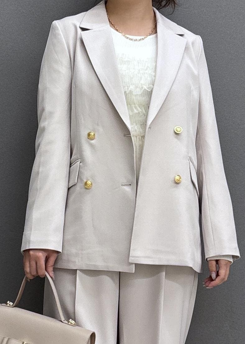 VIS【美easy】コンフォート金ボタンジャケット/イージーケア・UVケア・セットアップ対応ベージュ / M¥8,899レビュー160㎝ / Mサイズ着用。ヒップまで隠れる着丈で安心感があります!袖は手の甲にかかる長さだったので、折り返して着ても◎腕まわりがゆったりしているのでシャツはもちろん、薄手のニットも重ね着できました!さらっとした素材で軽い着心地です♩