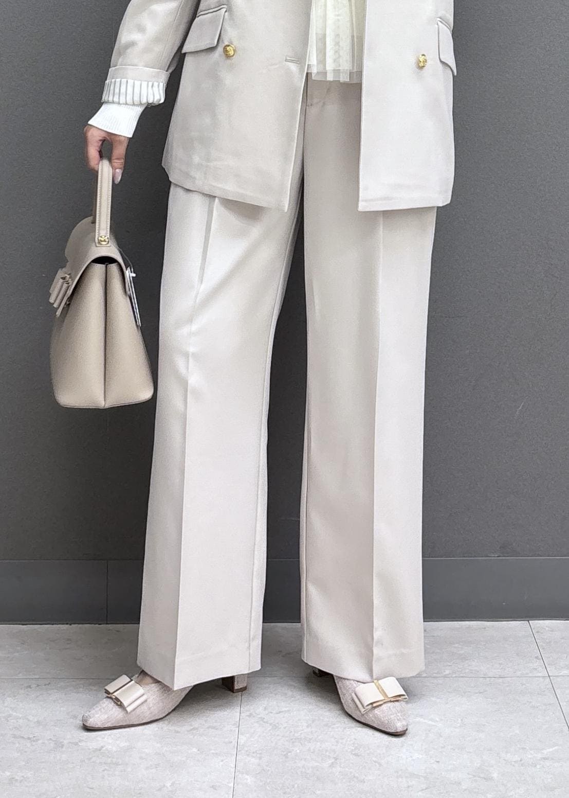 VIS【美easy】コンフォートストレートワイドパンツ/イージーケア・UVケア・セットアップ対応ベージュ / M¥5,929レビュー160㎝ / Mサイズ着用。ウエストまわりは程よくゆとりがあり、薄手のニットもトップスインできます!足首は隠れる着丈ですが、フラットシューズでも擦らない長さです。太すぎないストレートで足のラインを拾いにくいシルエット◎さらっとした薄手の素材なので春まで着られそうです!