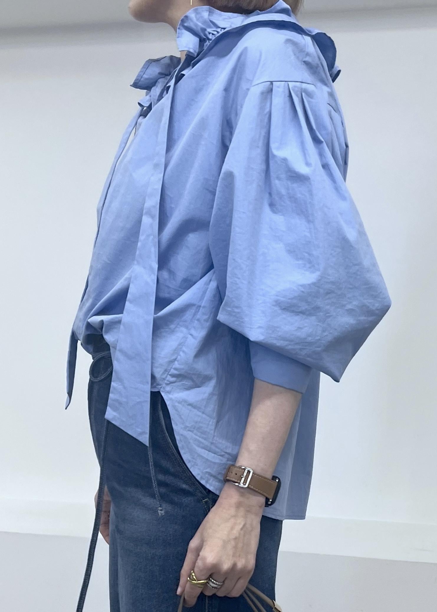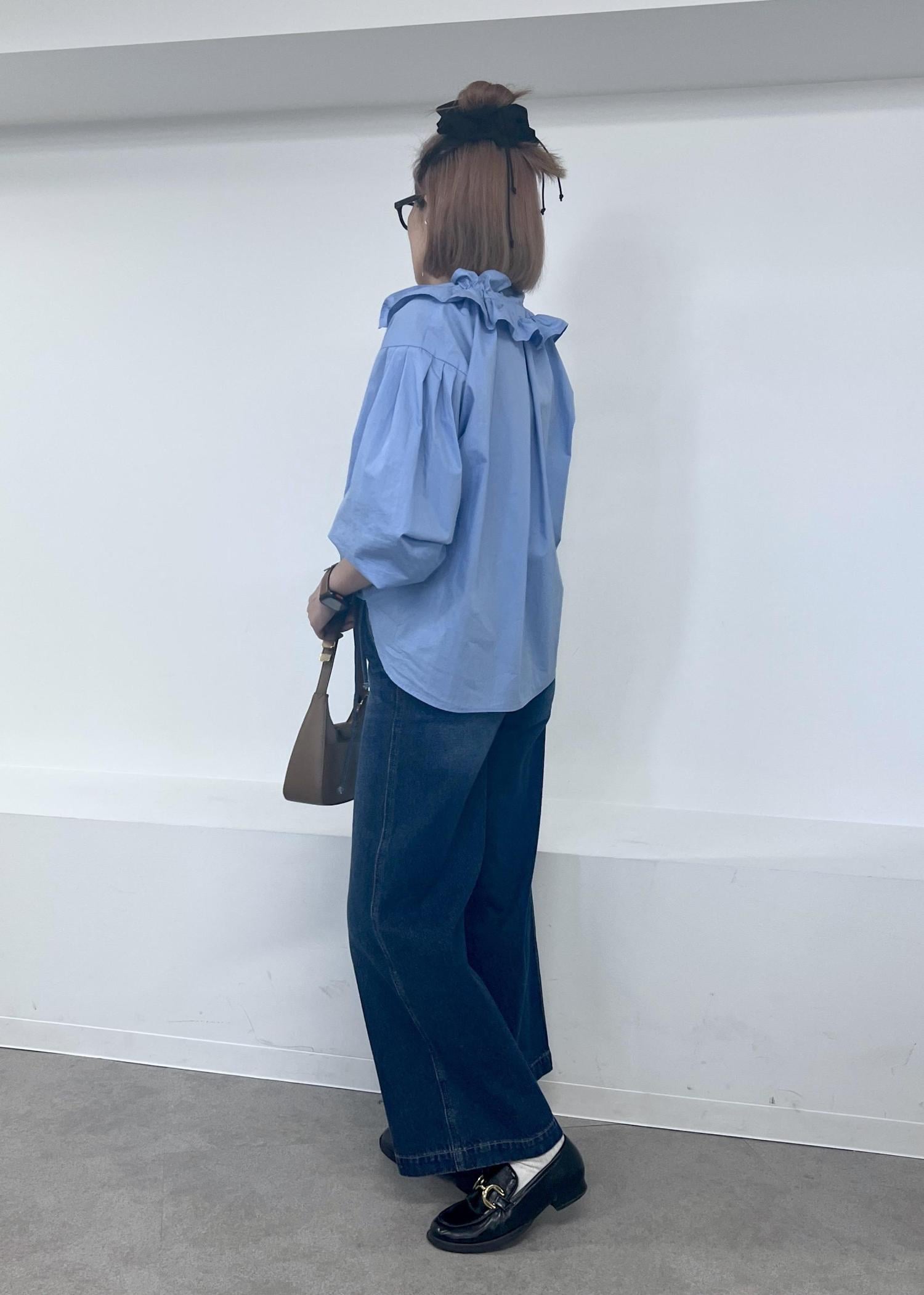 予約VISフリルネックブラウスサックス / F¥6,589レビューフリルがポイントのブラウスは、ボリューム感が命!