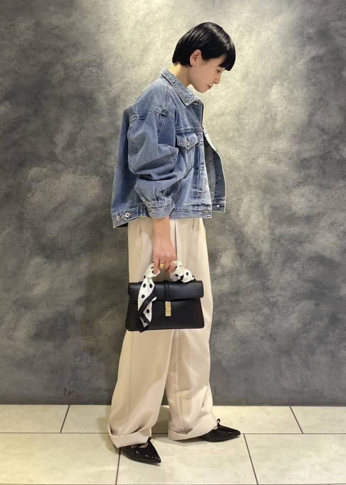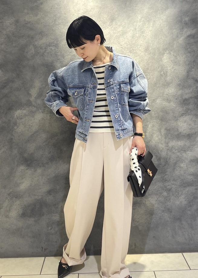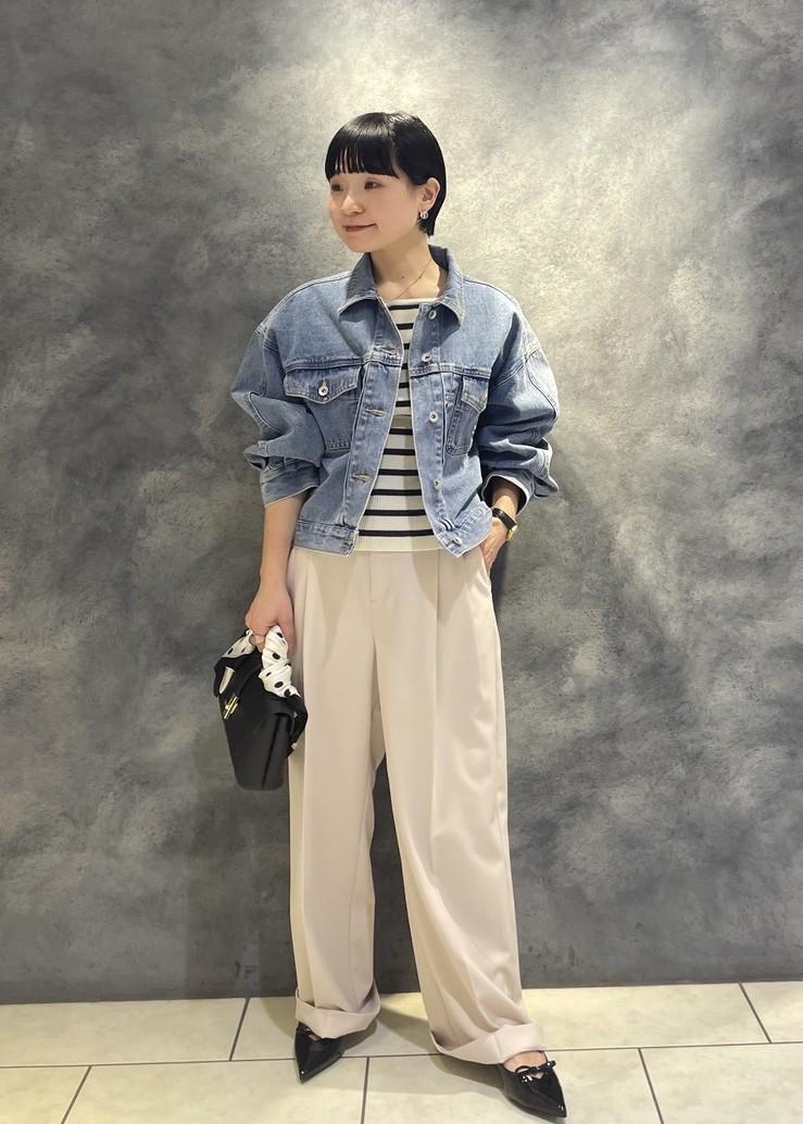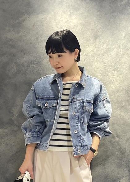 VISボリュームスリーブデニムジャケットサックス / F¥9,999レビュー154センチでお尻に少しかかる着丈です。