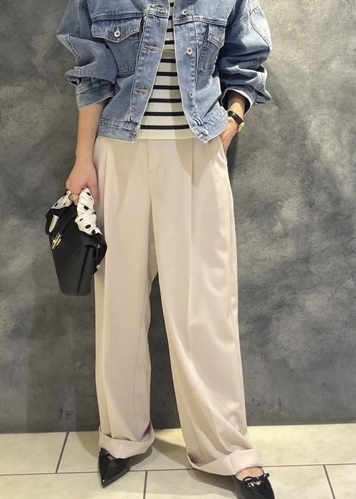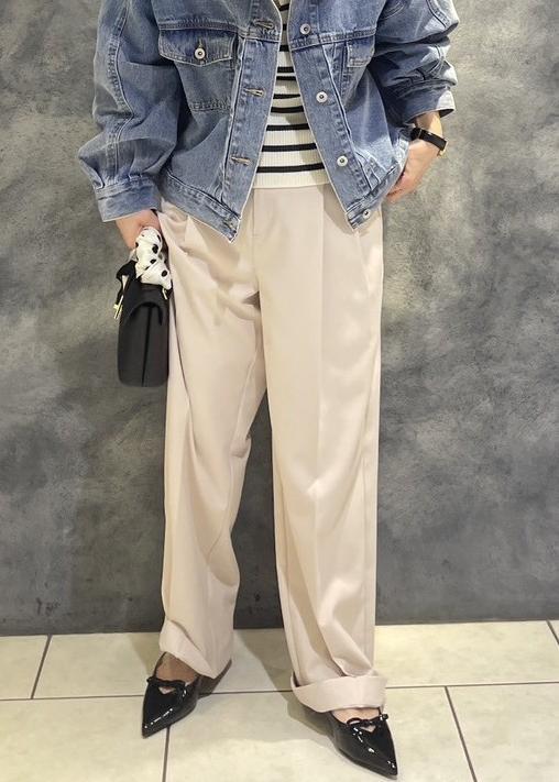 VIS【美easy】コンフォートストレートワイドパンツ/イージーケア・UVケア・セットアップ対応ベージュ / M¥5,929レビュー154センチでMサイズ着用。