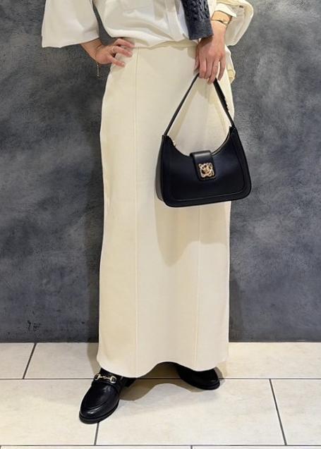 VISピンタックデザインニットスカートオフホワイト /¥5,929レビューニット素材でタイトなシルエットながら、ストレスフリーで着て頂けます。