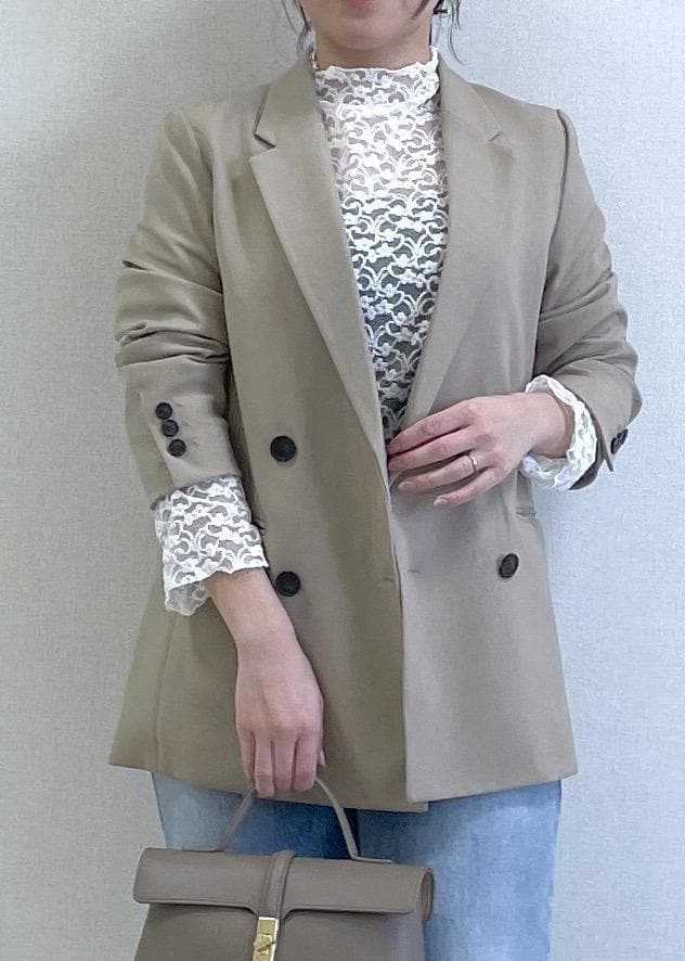 VIS美easyウーリッシュダブルブレストテーラードジャケット【セットアップ対応/洗える】ベージュ / S¥8,009レビュー150cmでSサイズ着用です。