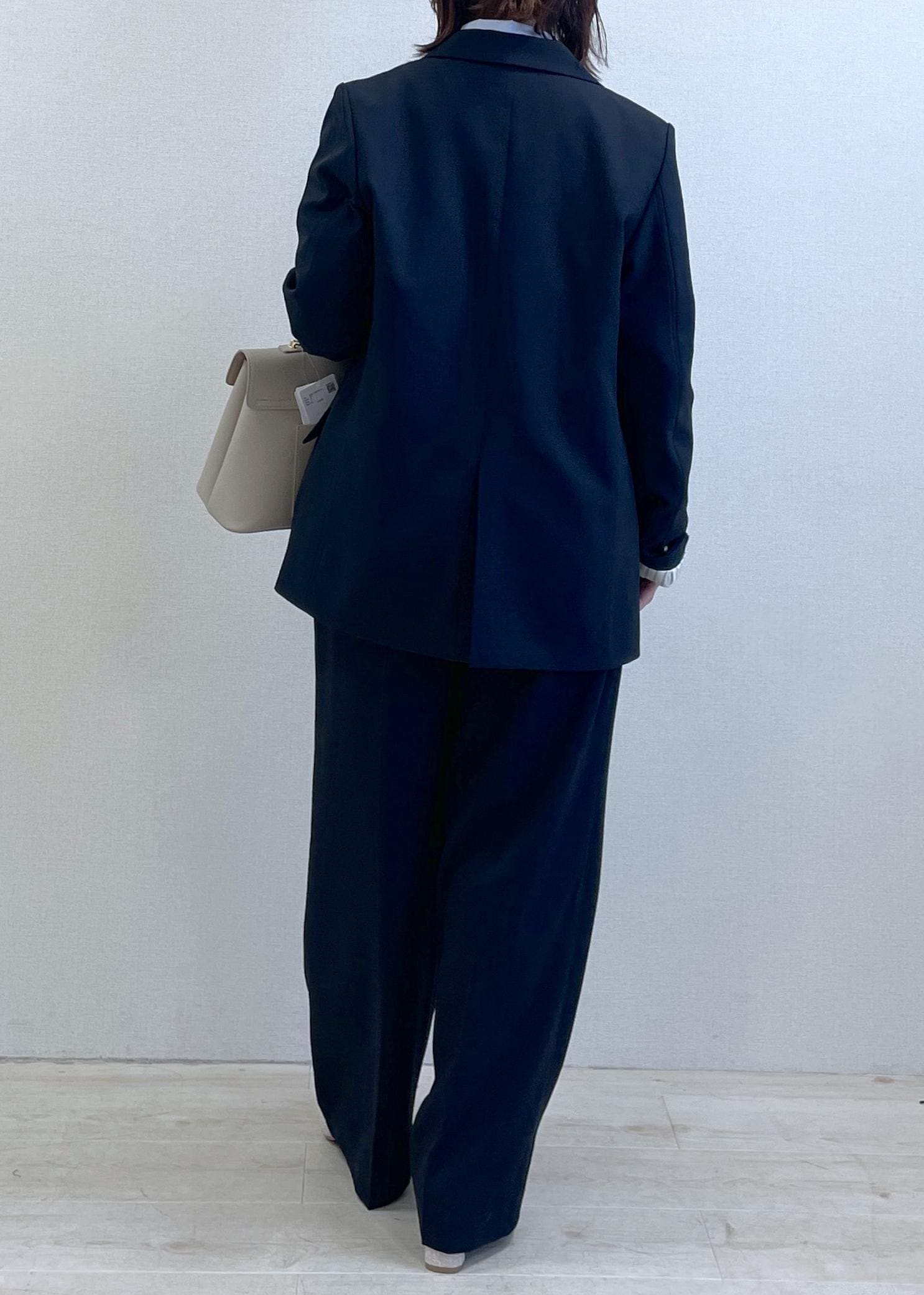 サイズ感は少し大きめですが、裏地が付いているので袖を捲って手首を見せてあげると抜け感が出るので着方次第で見え感も変わます。