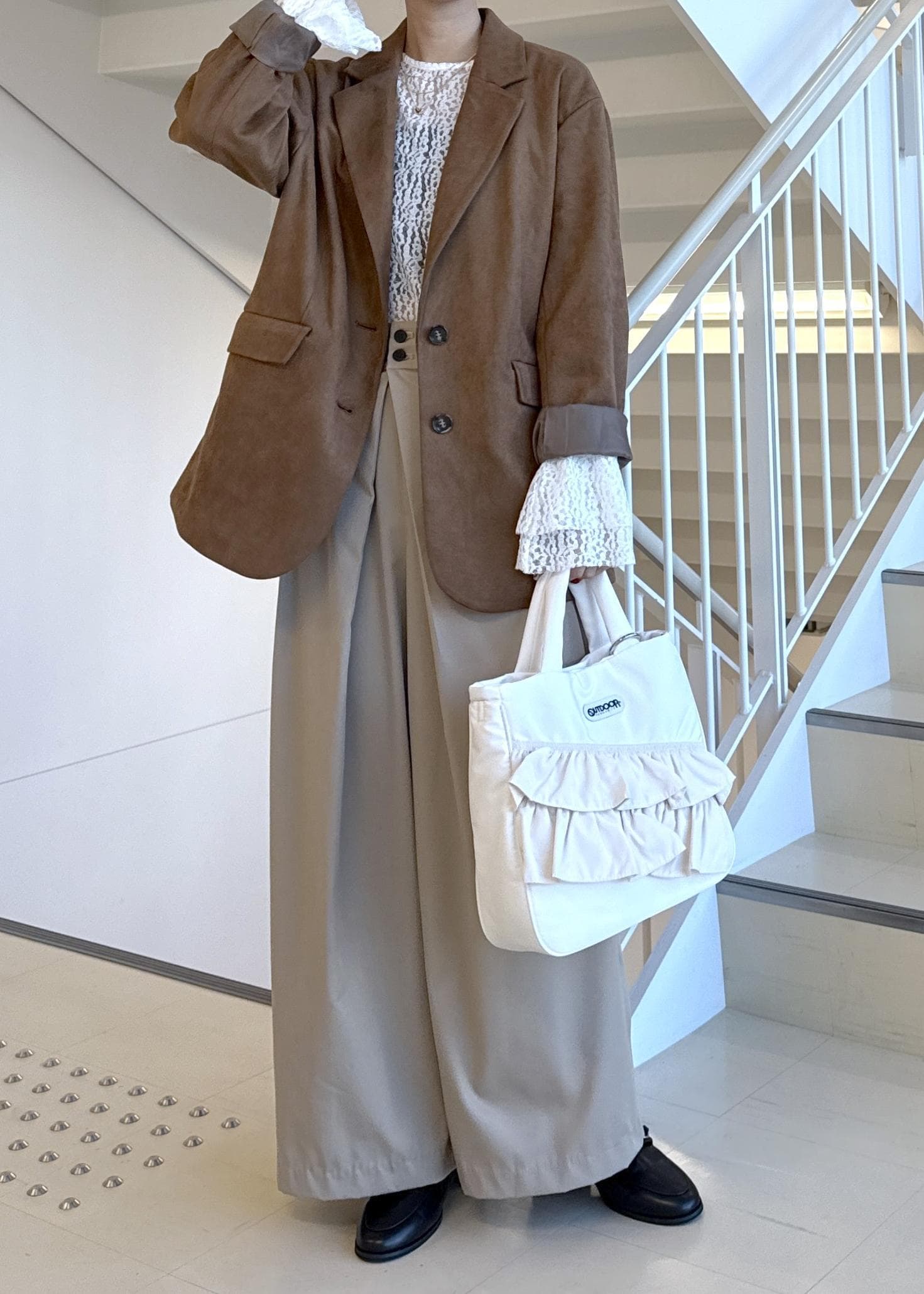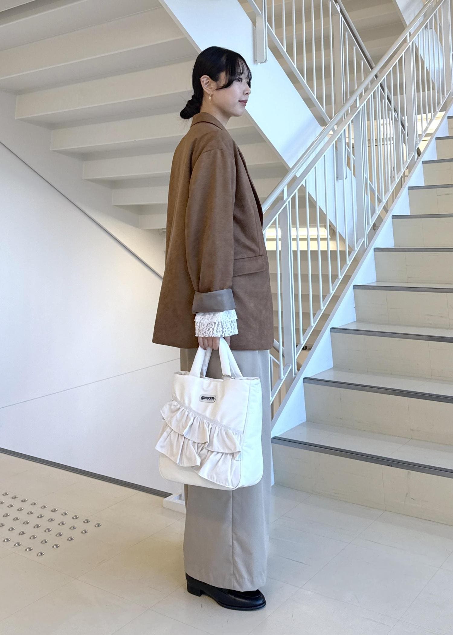オーバーサイズでカジュアルな印象を組み合わせたキレカジコーデです
