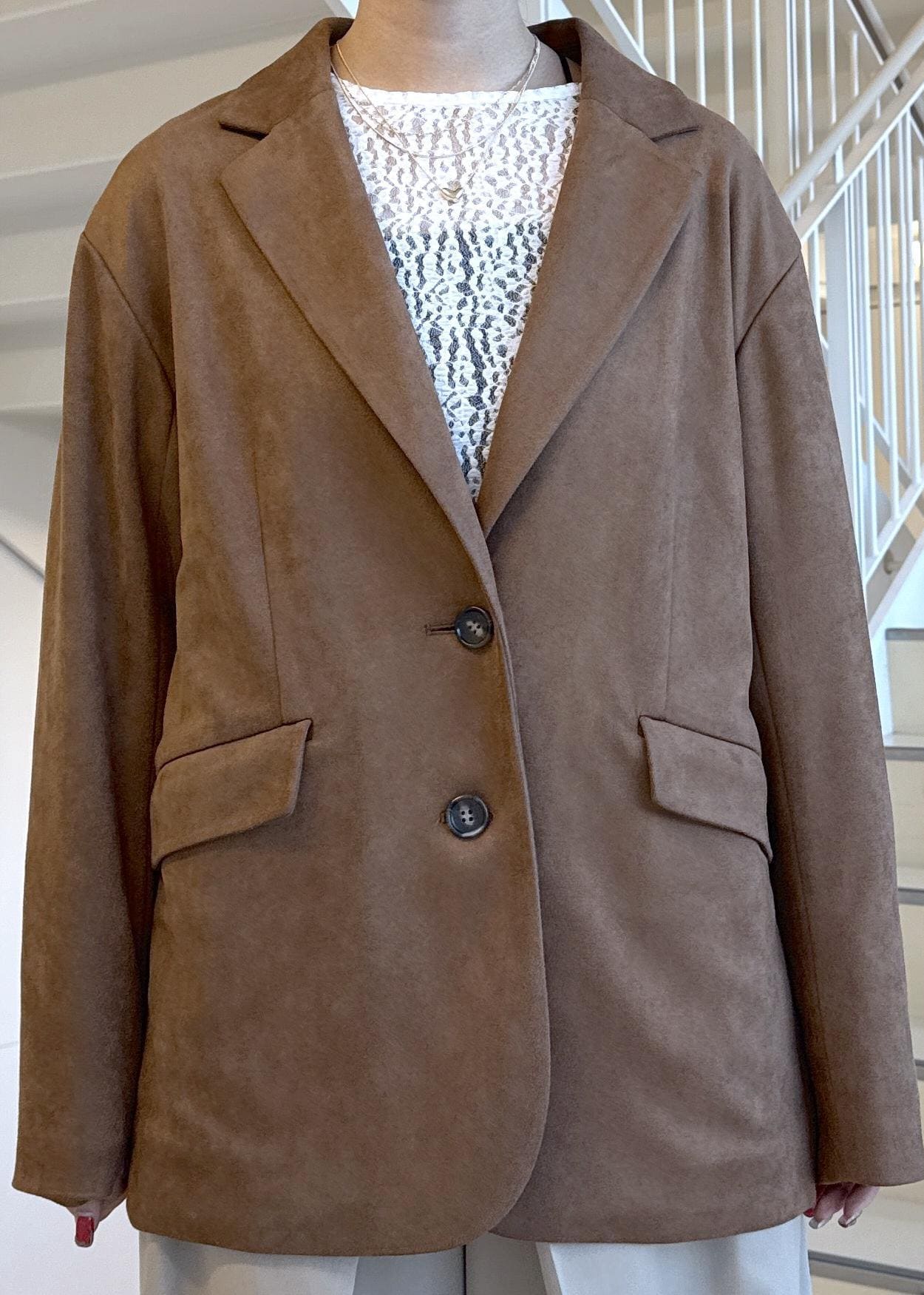 VISオーバースエードテーラードジャケットブラウン / F¥8,899レビューオーバーサイズなジャケットで、カッチリした生地ではなく滑らかな生地なので、凄く羽織りやすいです。おしりもしっかり隠れる丈感なので、体型カバーも叶います