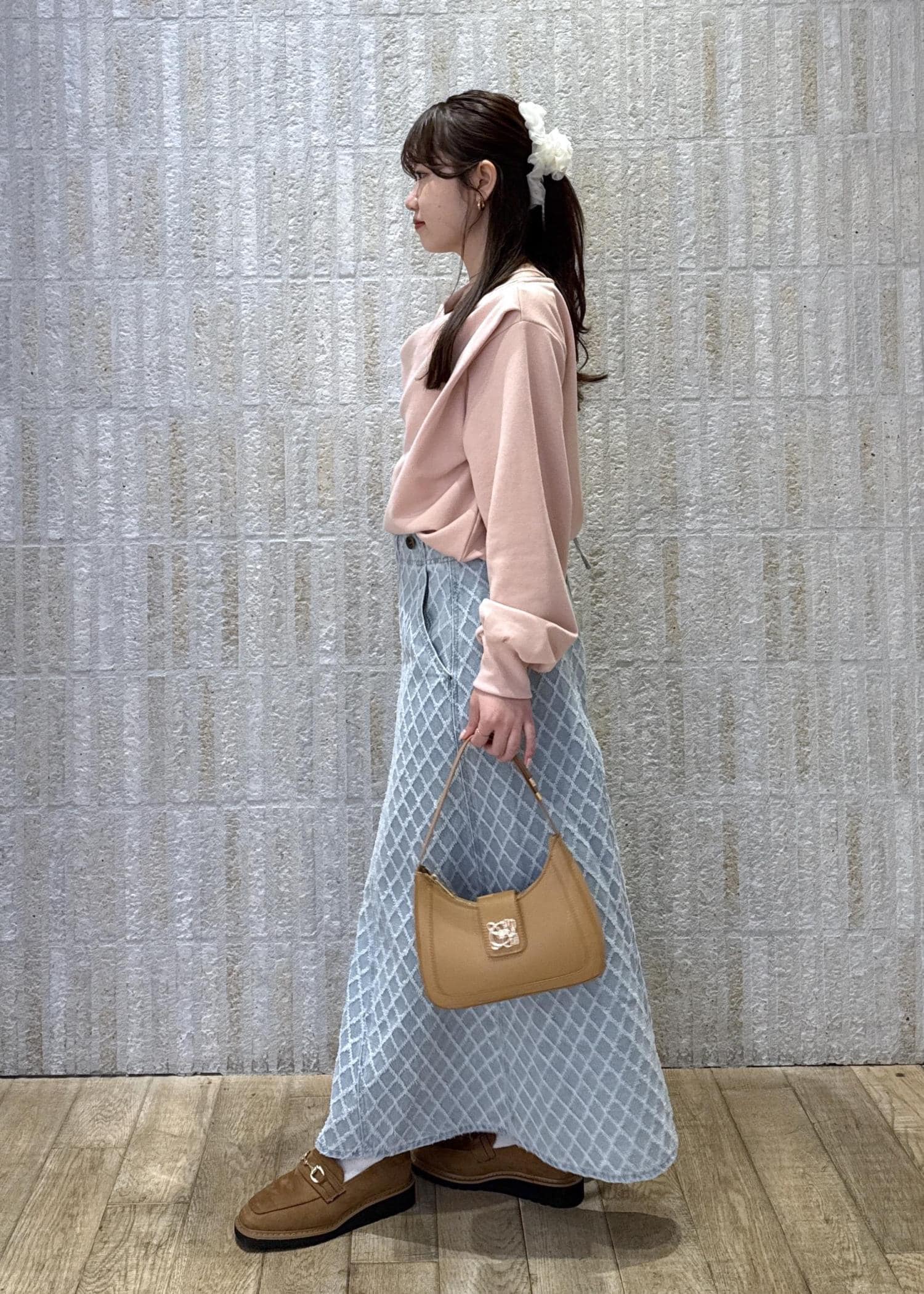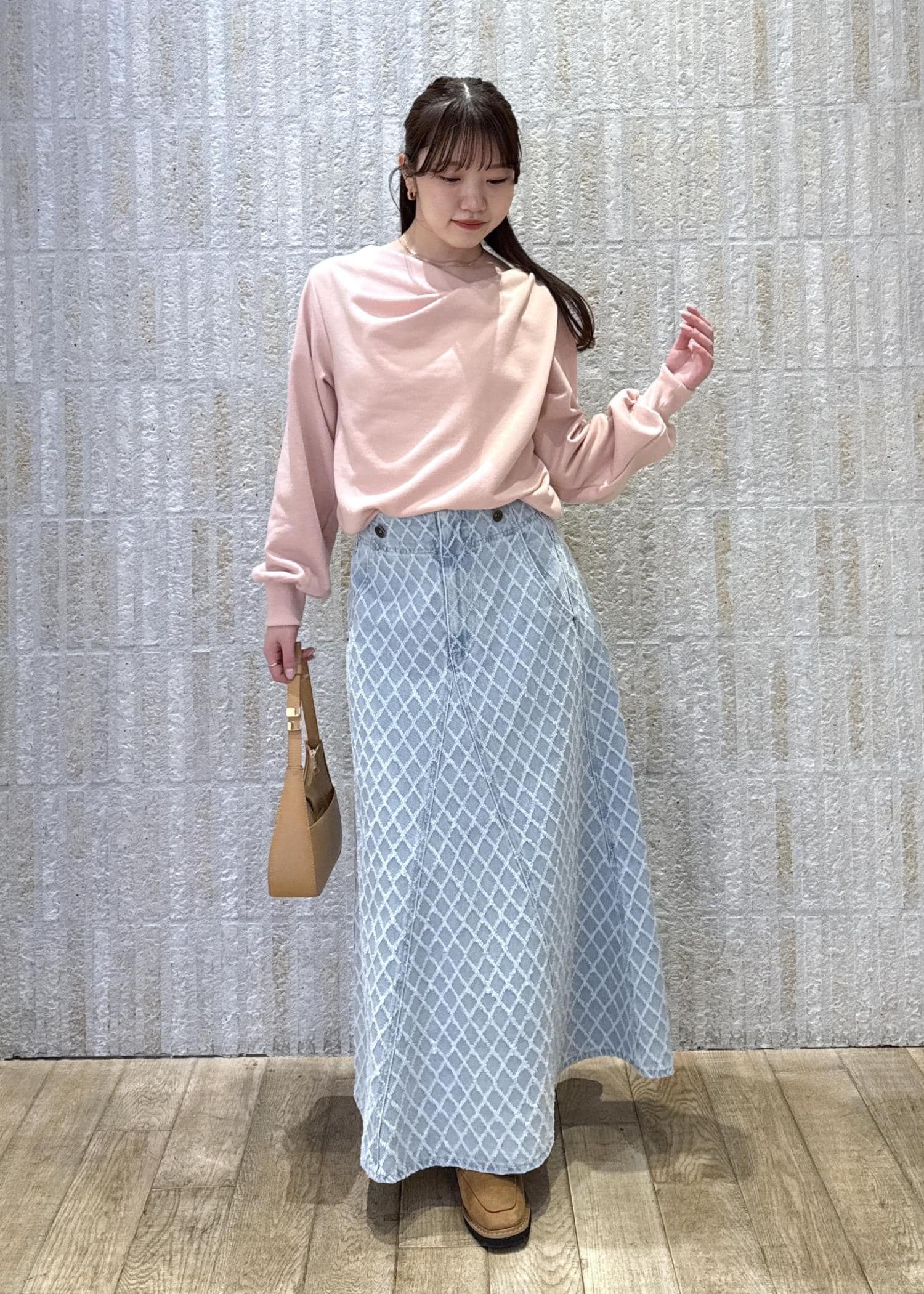 デニムスカートを合わせてフェミニン×カジュアルスタイル!