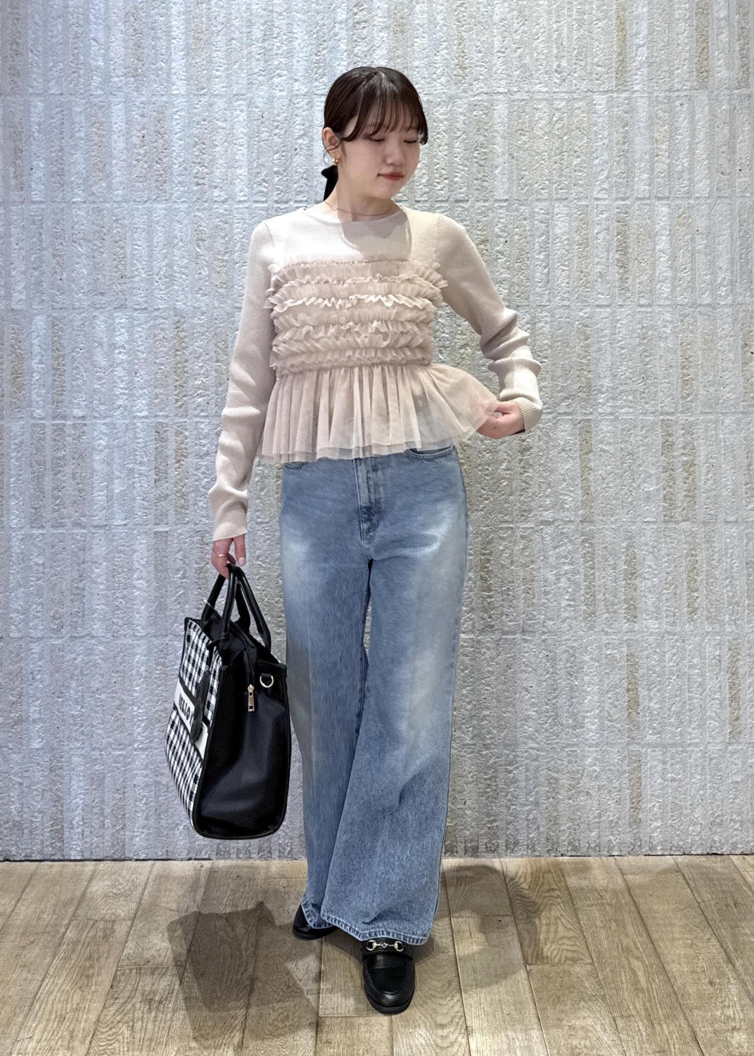 HELLO KITTYとのコラボバッグをメインに、春のお出かけにぴったり!フェミニン×カジュアルコーデに◎