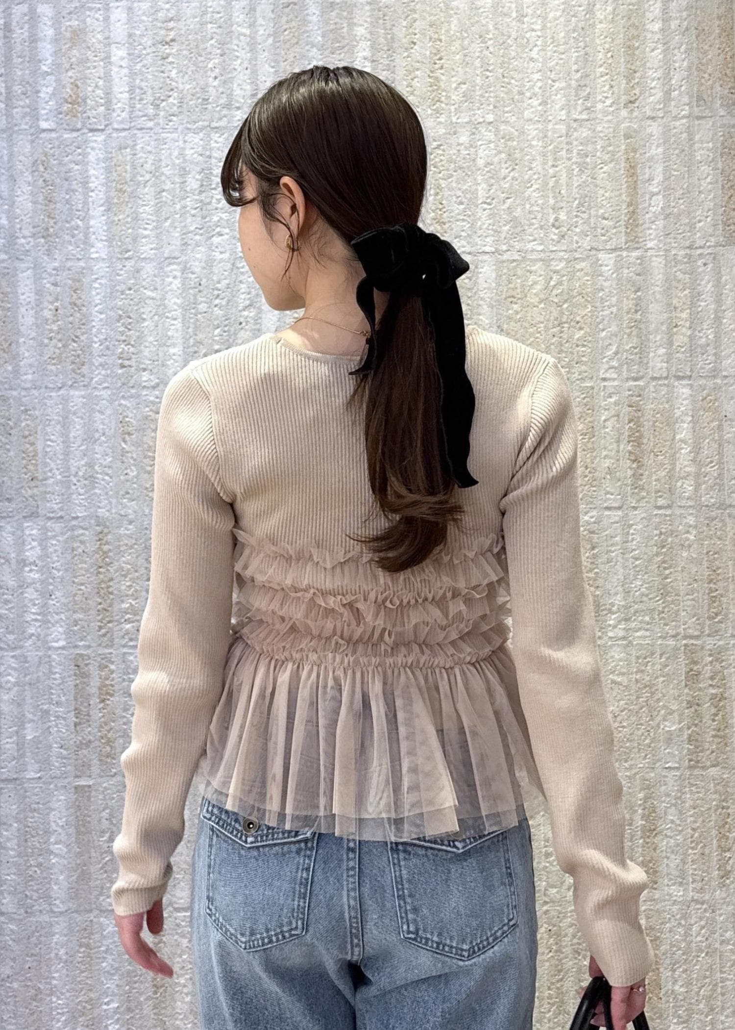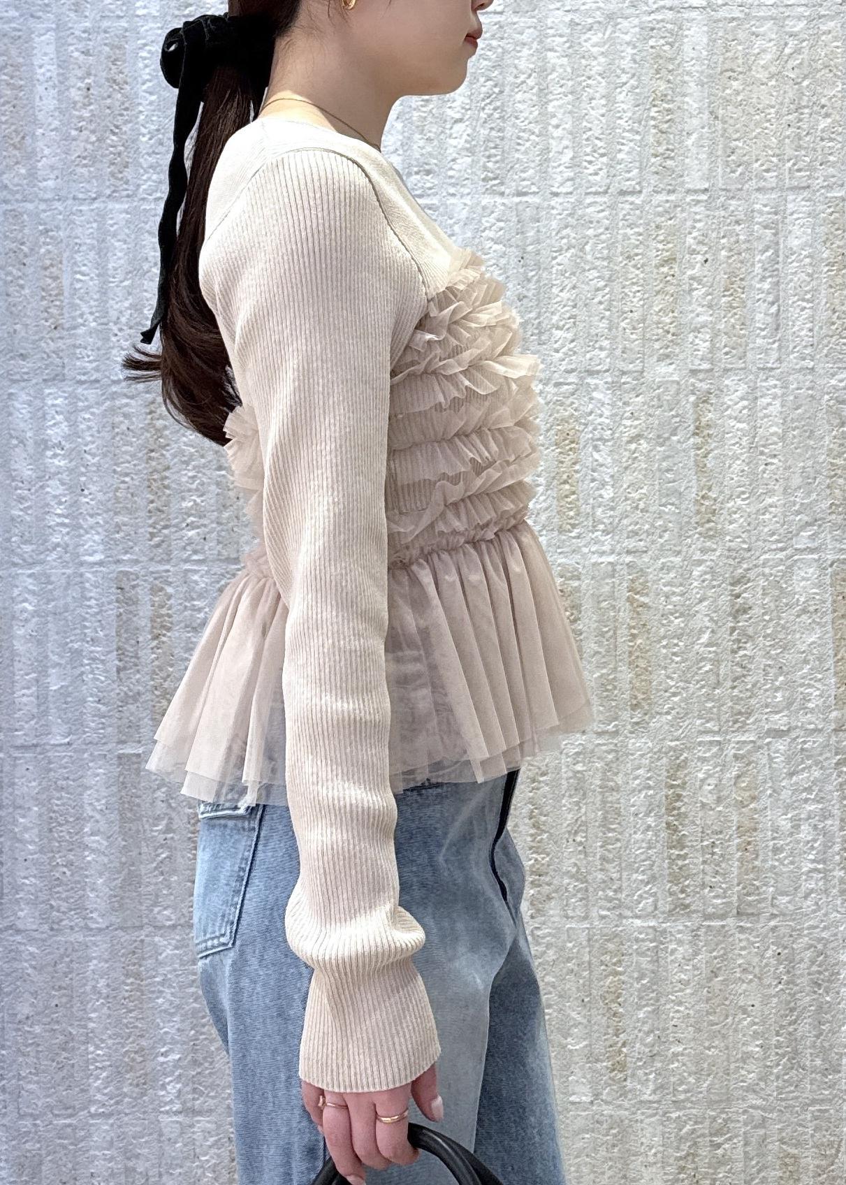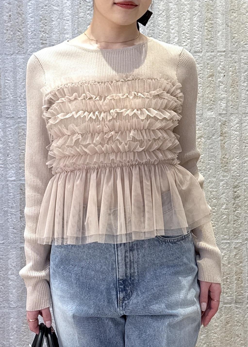 裾のニット部分は、インするとチュールの透け感が可愛く見えます♡ -