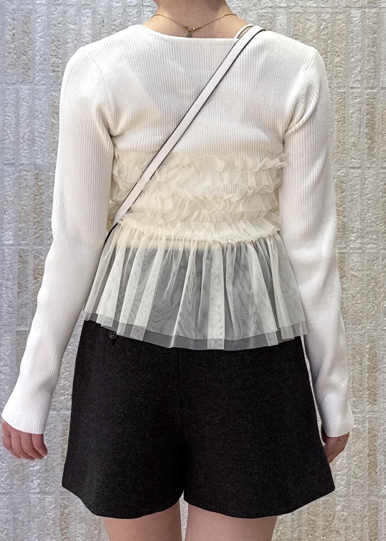 裾のニット部分は、インするとチュールの透け感が可愛く見えます♡ -