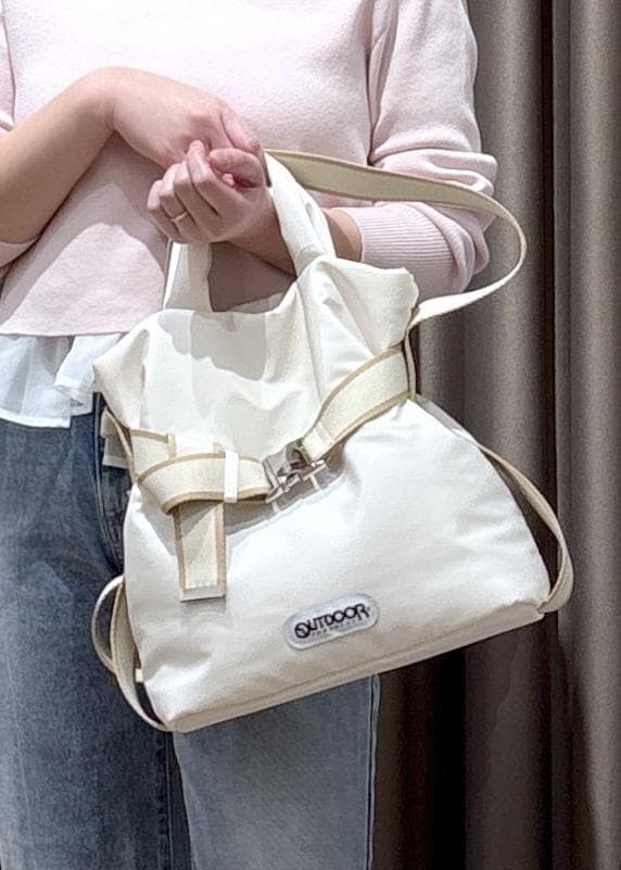VIS【OUTDOOR PRODUCTS】VIS別注2WAYベルト付きパデッドトートバッグキナリ / F¥8,580レビューどれもVISでしか買えない限定カラー!中でもALLブラック×合皮はアウトドアプロダクツでも初のデザイン!ややふくらみのあるフォルムに、微光沢の素材を組み合わせた上品カジュアルなデザインバッグ!フロントにあしらった配色テープとシルバーバックルがアクセントになり、シンプルなスタイリングにも映える仕上がりです!ベルトをキュッと締めると、口元がくしゅっと寄って丸みのあるシルエットに!ショルダーと手持ちの2WAY仕様で、気分やコーデに合わせて持ち替えられる使い勝手の良さも魅力です!