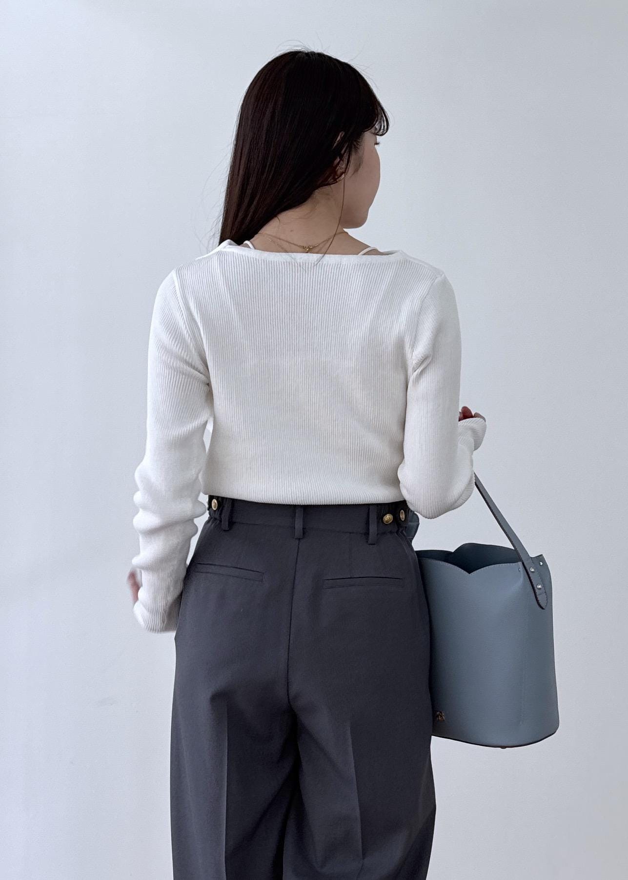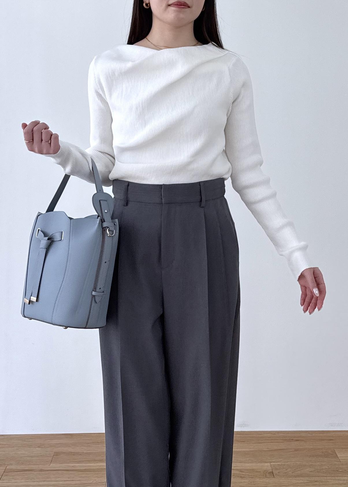 NEW! 予約VISドレープオフショルダーリブニット/イージーケアオフホワイト / F¥4,389レビュー大人気!ドレープデザイントップス!